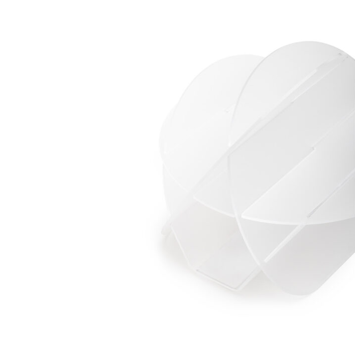La lumière traverse une composition de demi-cercles superposés sur différents plans, créant un fascinant jeu tridimensionnel d'ombre et de lumière, capable de transformer l'environnement avec une touche inattendue.