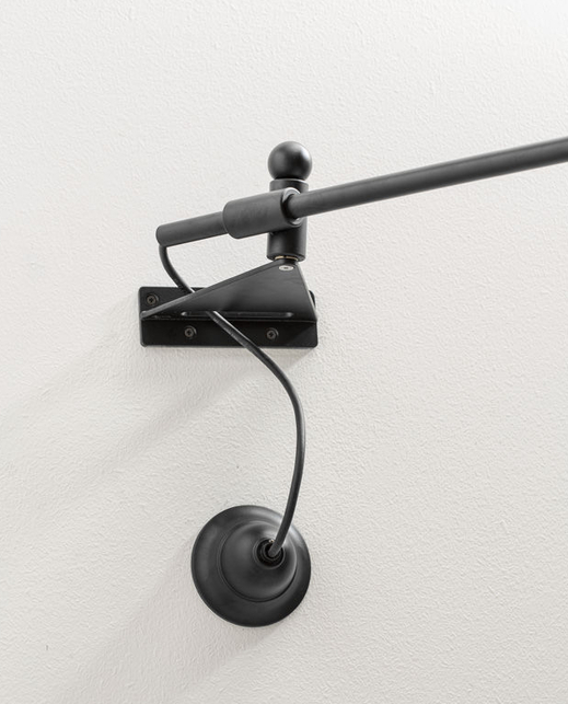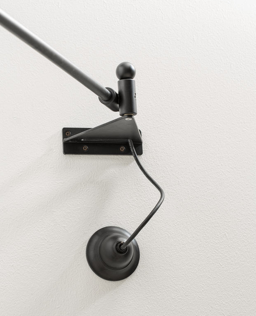 Applique avec bras orientable horizontalement jusqu'à 90°, en maintenant toujours une position parallèle au sol.