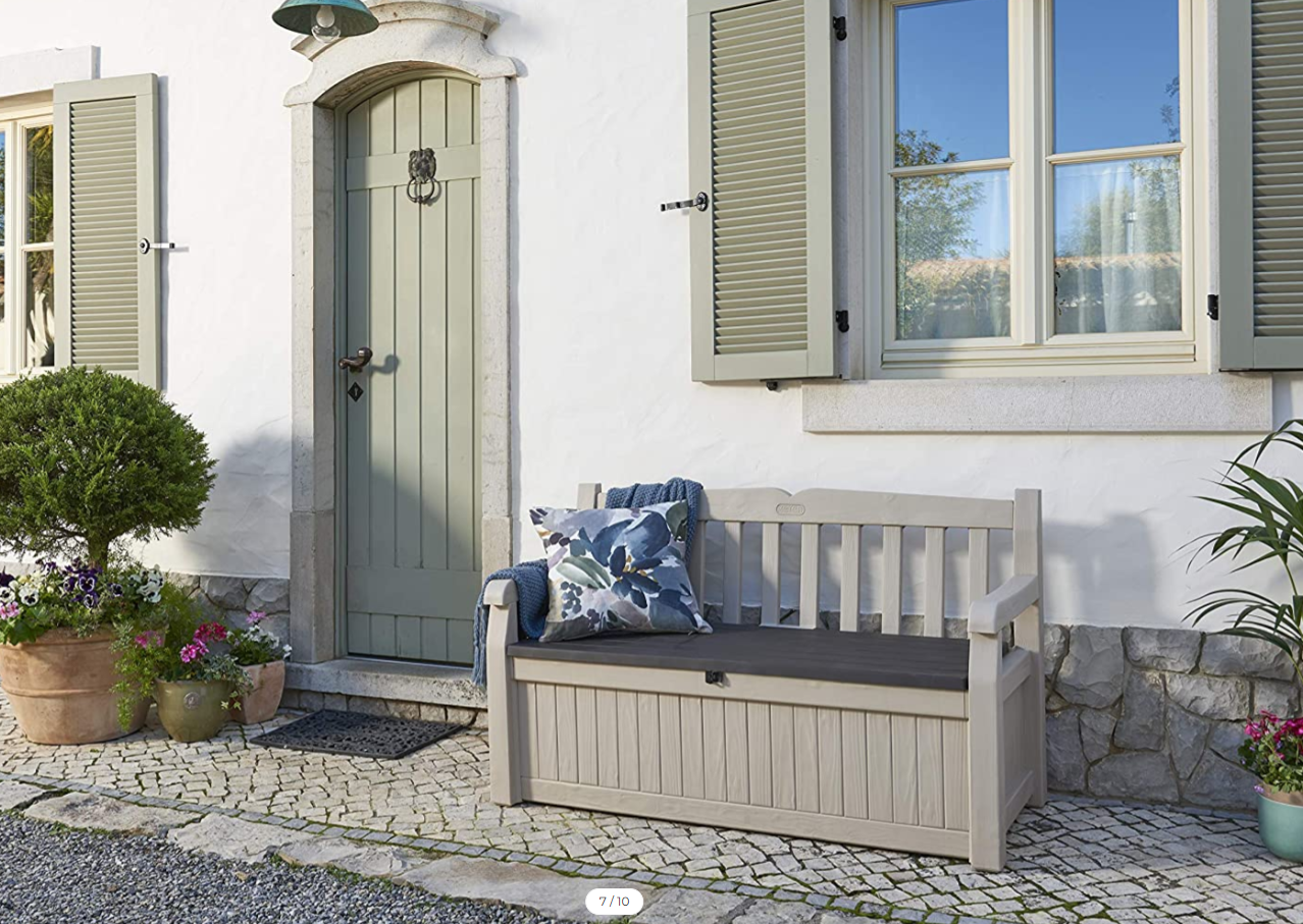 Grâce à son design élégant effet bois, il s'intègre parfaitement dans les jardins, terrasses, balcons ou vérandas, offrant des sièges pratiques et un grand espace de rangement.