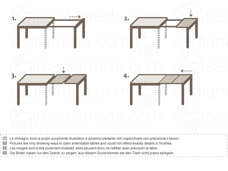 La table moderne Baron mesure 110 x 70 cm et peut être rallongée jusqu'à 155 x 70 cm.