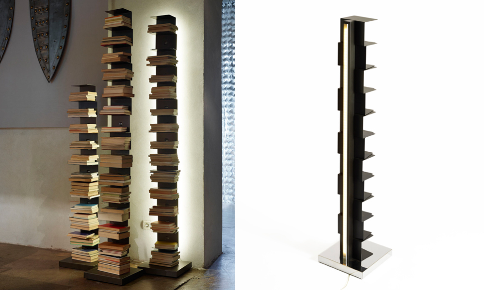 Bibliothèque et en même temps lampe cette variante particulière de Ptolomeo permet non seulement de garder les livres en ordre, mais aussi d'éclairer la pièce, de manière agréable et avec une lumière douce .