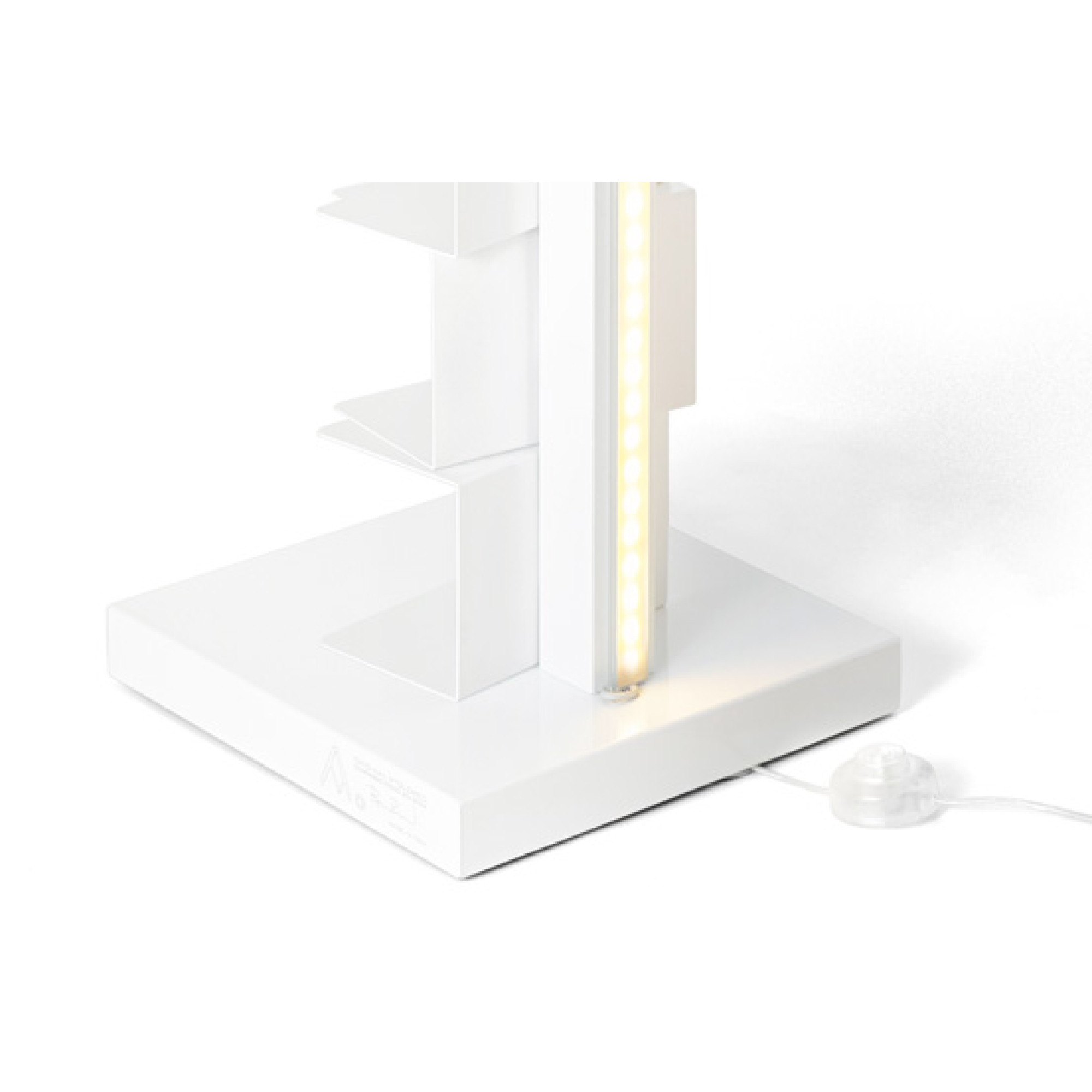Bibliothèque verticale autoportante en métal avec éclairage direct à LED, 12V 3000 ° K. Câblage de 2,5 m, interrupteur et prise transparents.