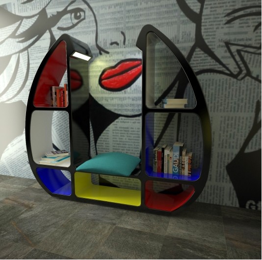 Shelley n'est pas seulement une simple bibliothèque, mais elle peut aussi devenir un coin détente où vous pouvez lire confortablement un livre, et cela grâce également à l'hébergement d'une lumière LED qui pointe directement vers le siège.