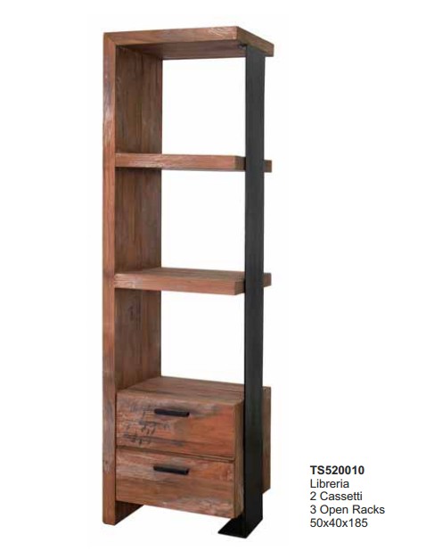 Bibliothèque 2 tiroirs 3 étagères ouvertes à gauche.