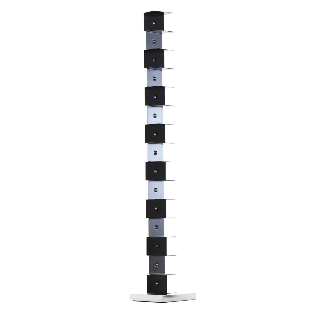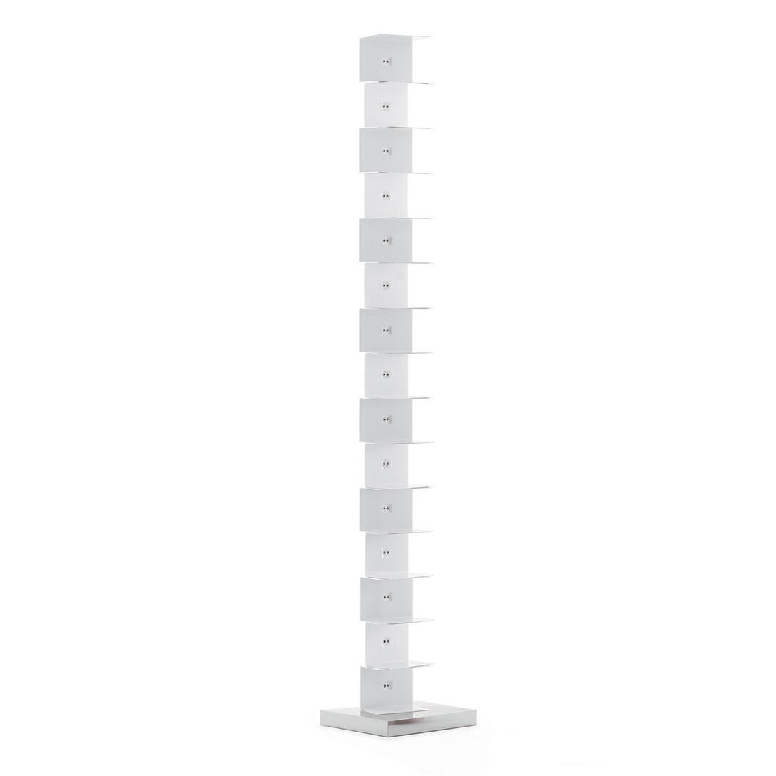 Original Ptolomeo est un contenant qui cache sa forme pour privilégier son contenu, élimine le "superflu" pour mettre en valeur l'essentiel , c'est-à-dire les livres . La bibliothèque ressemble à une simple colonne en métal à laquelle sont également jointes de fines étagères en métal. Étagères qui disparaissent peu à peu que la colonne est remplie de livres, quand il se remplit d' origine Ptolome ou devient tout à fait négligeable et il semble que les livres placés sur elle sorreggano seul.