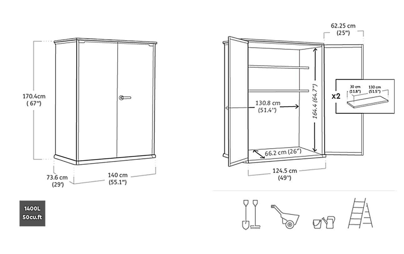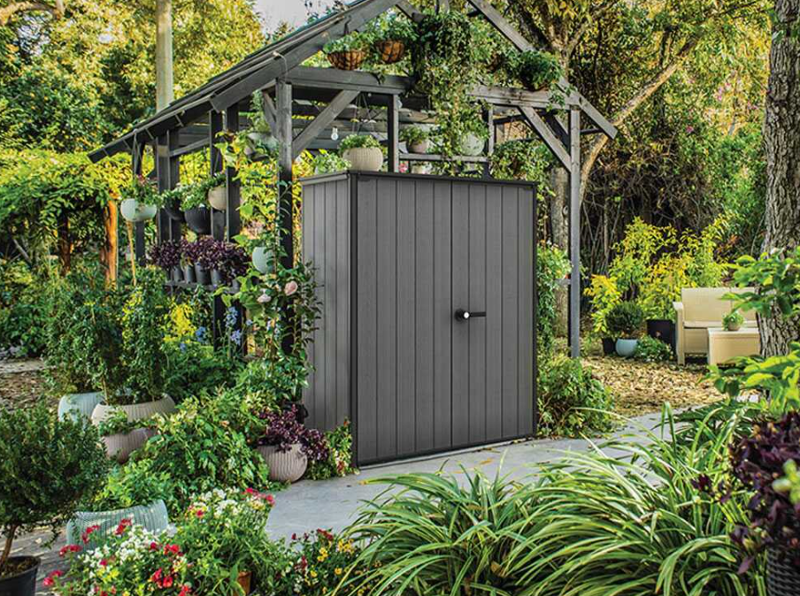 Compact mais spacieux, il s'adapte facilement aux jardins, terrasses ou balcons, offrant une solution ordonnée et résistante aux intempéries.