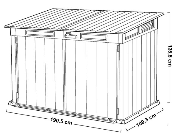 Grâce à sa structure robuste en résine effet bois , il est parfait pour ranger poubelles, outils de jardin, barbecues, meubles d'extérieur ou vélos , les protégeant de la pluie, du soleil et de l'humidité.