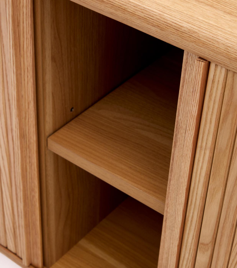 | Matériel | 60 % MDF E0 (panneau de fibres à densité moyenne à faible émission de formaldéhyde classe E0), 25 % bois de frêne (Fraxinus Excelsior), 10 % placage de frêne (Fraxinus spp.), 5 % PET |