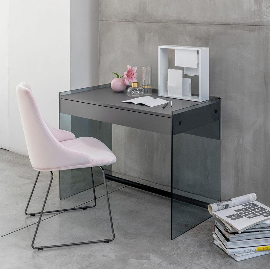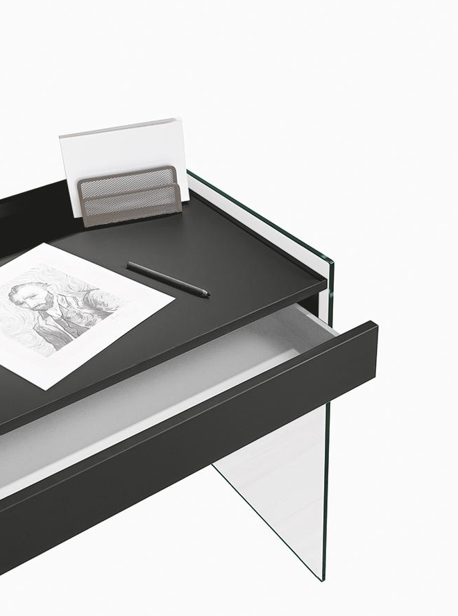 Bureau moderne et fonctionnel avec structure en verre trempé de 10 mm d'épaisseur, qui donne légèreté et transparence à l'environnement.