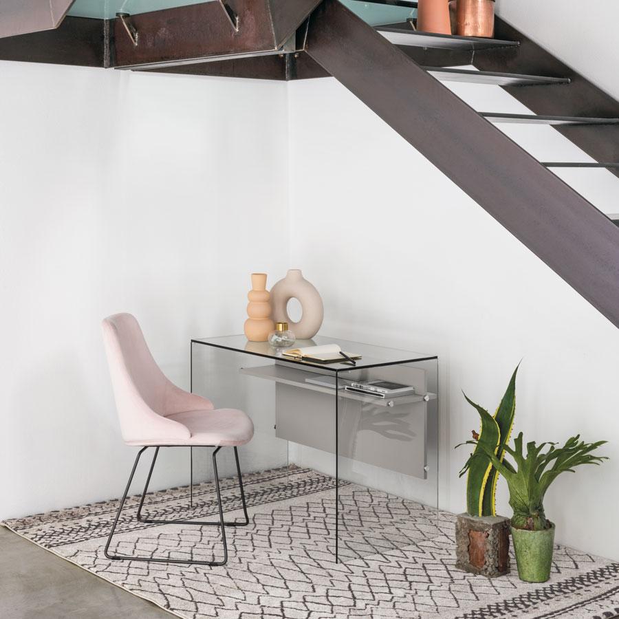 Doté d'un tube repose-pieds et de détails en aluminium, ce bureau compact est idéal pour optimiser les petits espaces.