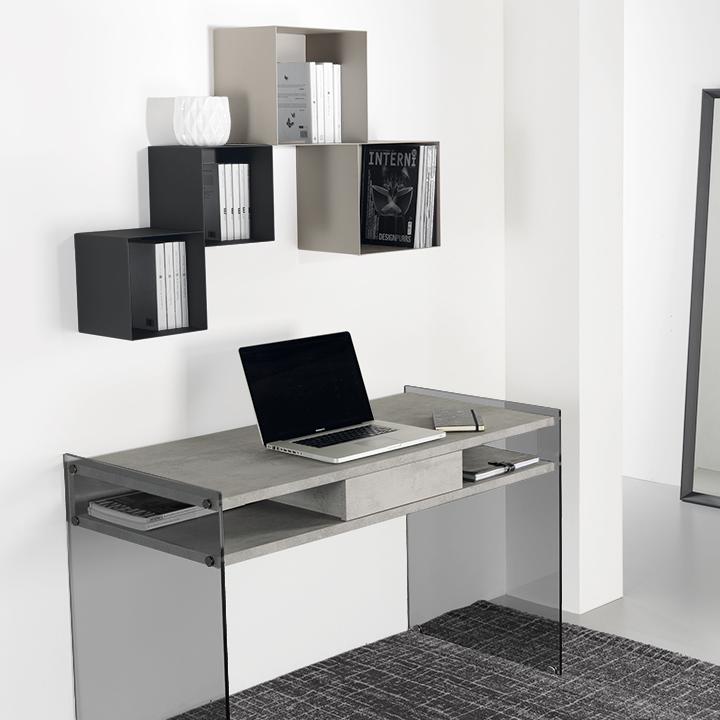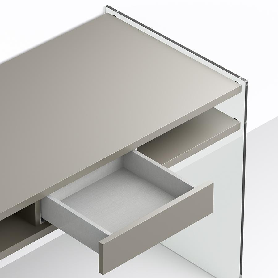 C'est le bureau le plus spacieux de notre collection, réalisé avec une structure en verre trempé transparent ou fumé de 10 mm d'épaisseur.