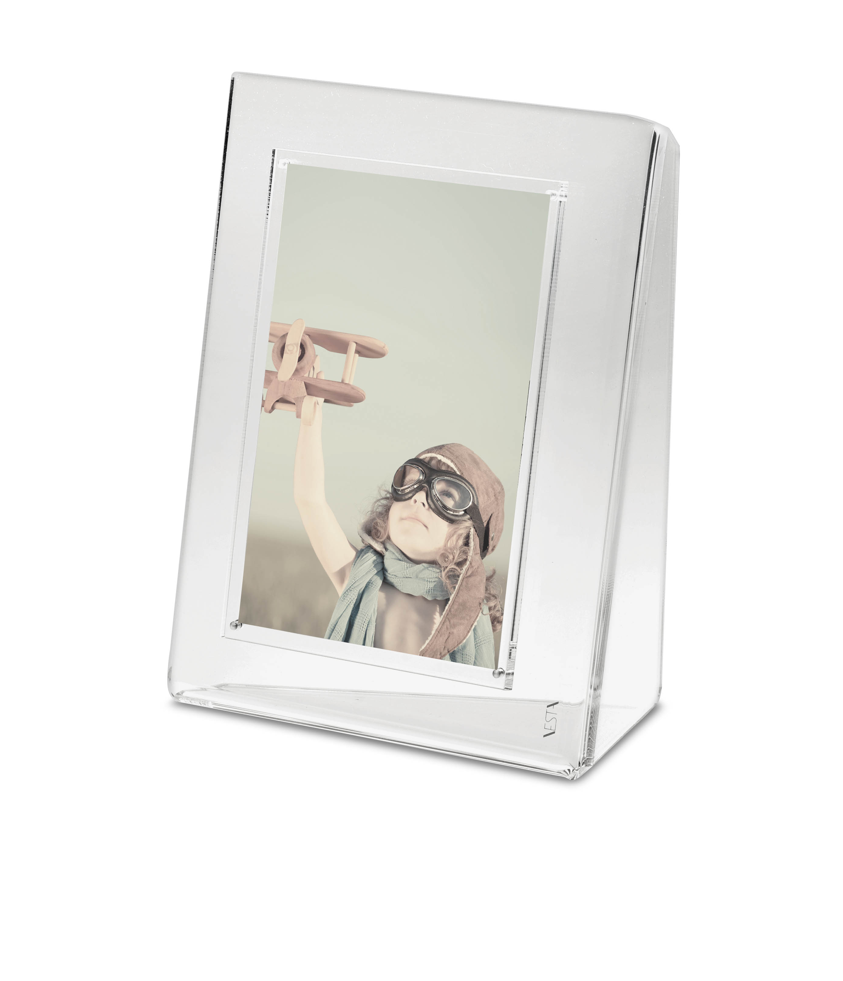 Cadre photo en cristal acrylique transparent.