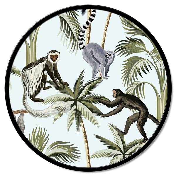 Panneau rond en fibre de bois recouvert de toile en pur coton imprimé en haute définition et avec structure en métal laqué mat.