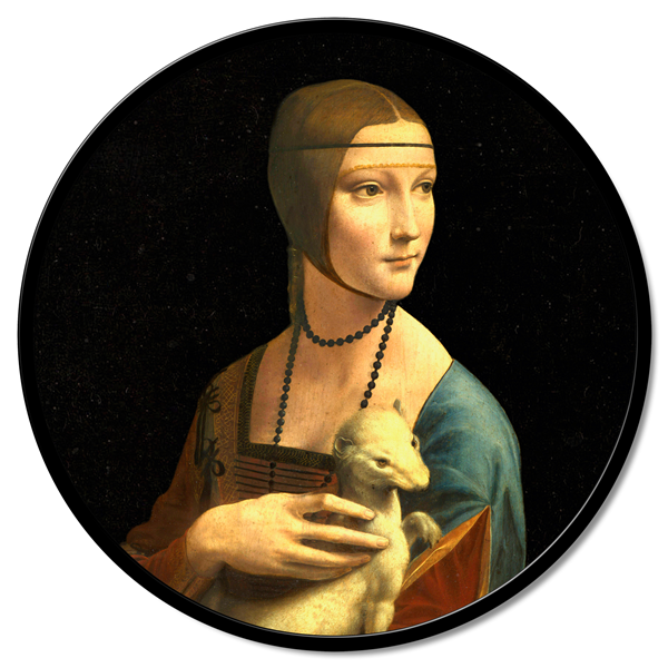 Panneau rond en fibre de bois recouvert de toile en pur coton imprimé en haute définition et avec structure en métal laqué mat.