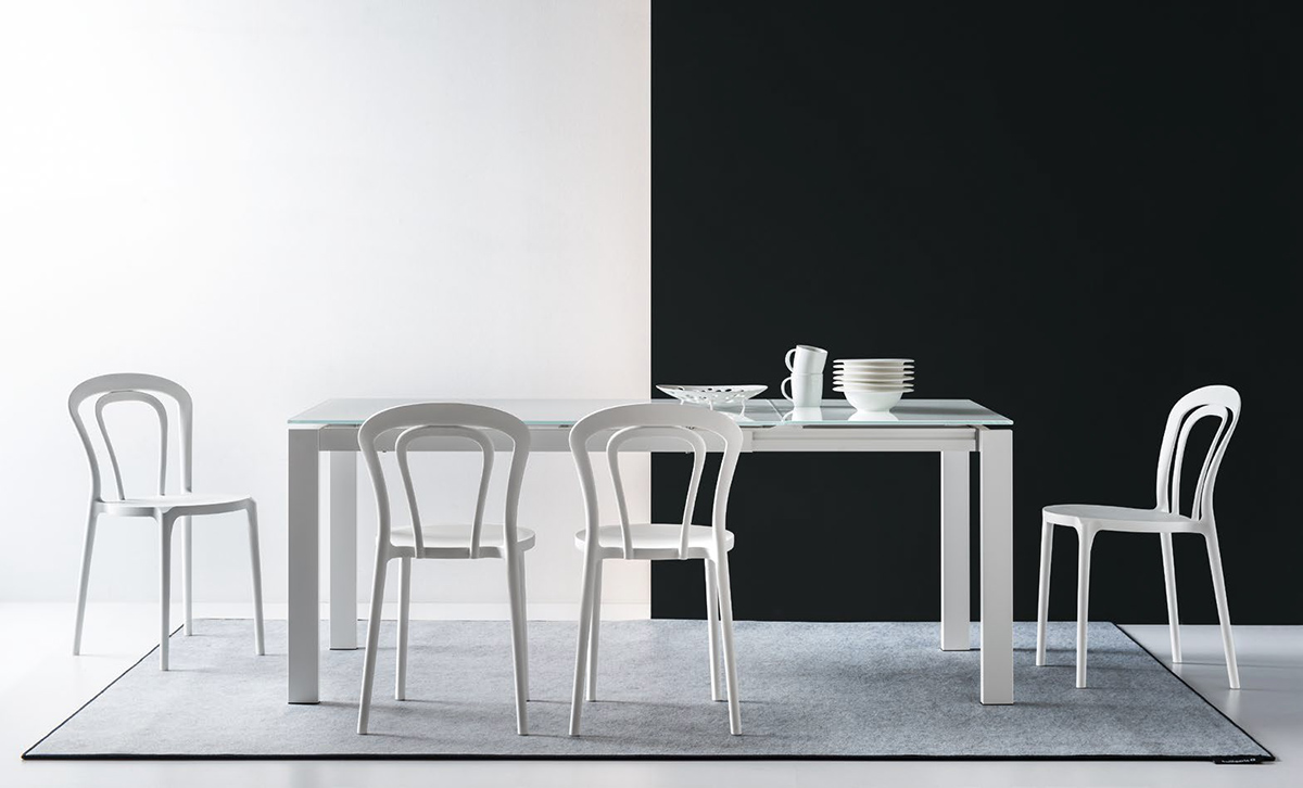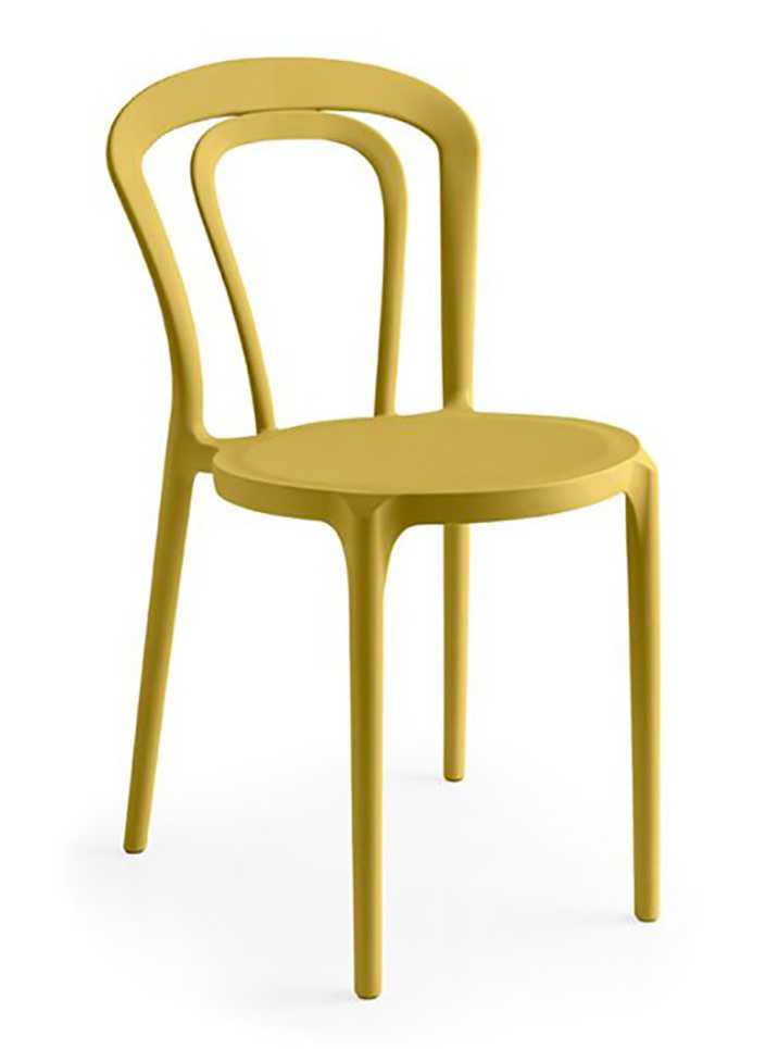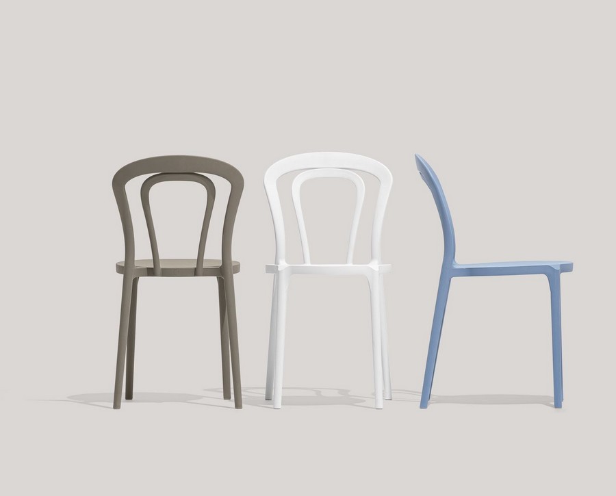 Caractérisée par un dossier confortable, la chaise a une structure en polypropylène et imite le style des chaises emblématiques Thonet.