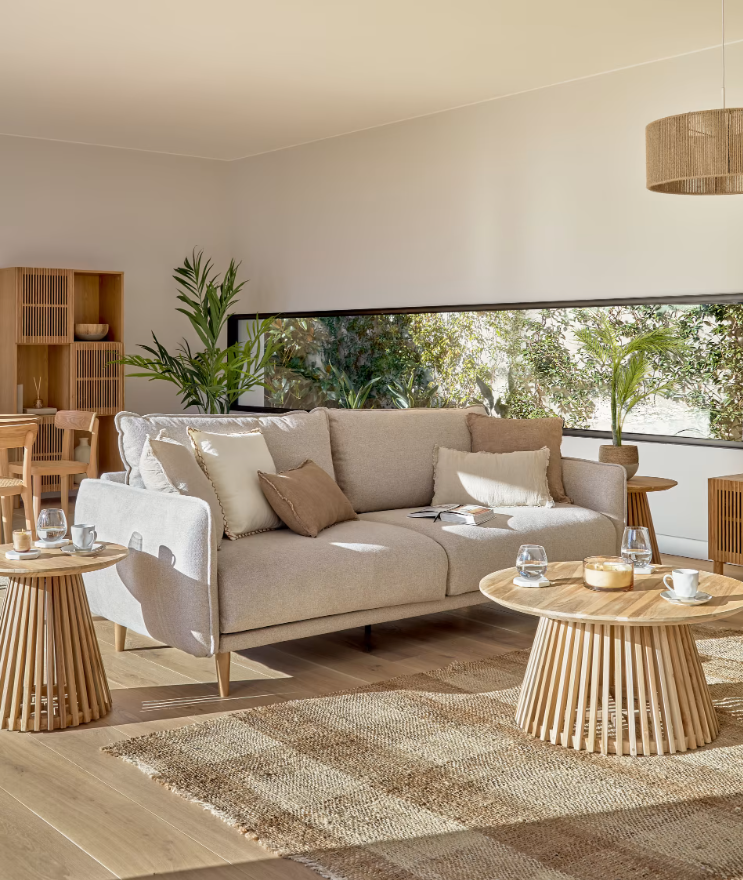 | Matériel | 20 % mousse (polyuréthane), 20 % bois de pin (Pinus pinaster), 17 % fibres recyclées, 12 % fibres acryliques, 10 % tissu, 6 % MDF E0 (panneau de fibres à densité moyenne à faible émission de formaldéhyde classe E0), 5 % bois de hêtre (Fagus Sylvatica), 5 % P |