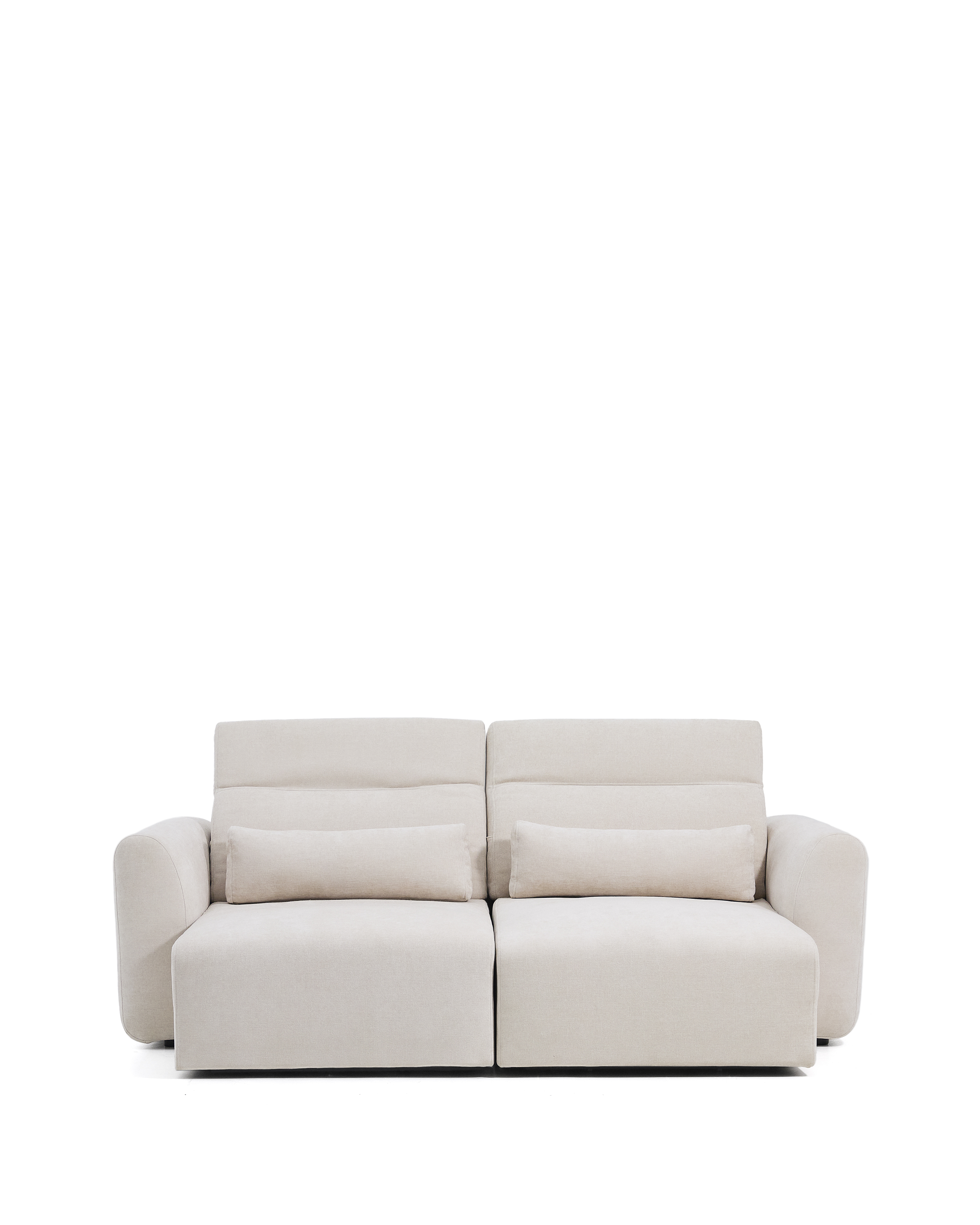 Canapé 3 places Lares avec assises coulissantes motorisées et appui-tête inclinable en chenille beige 240 cm