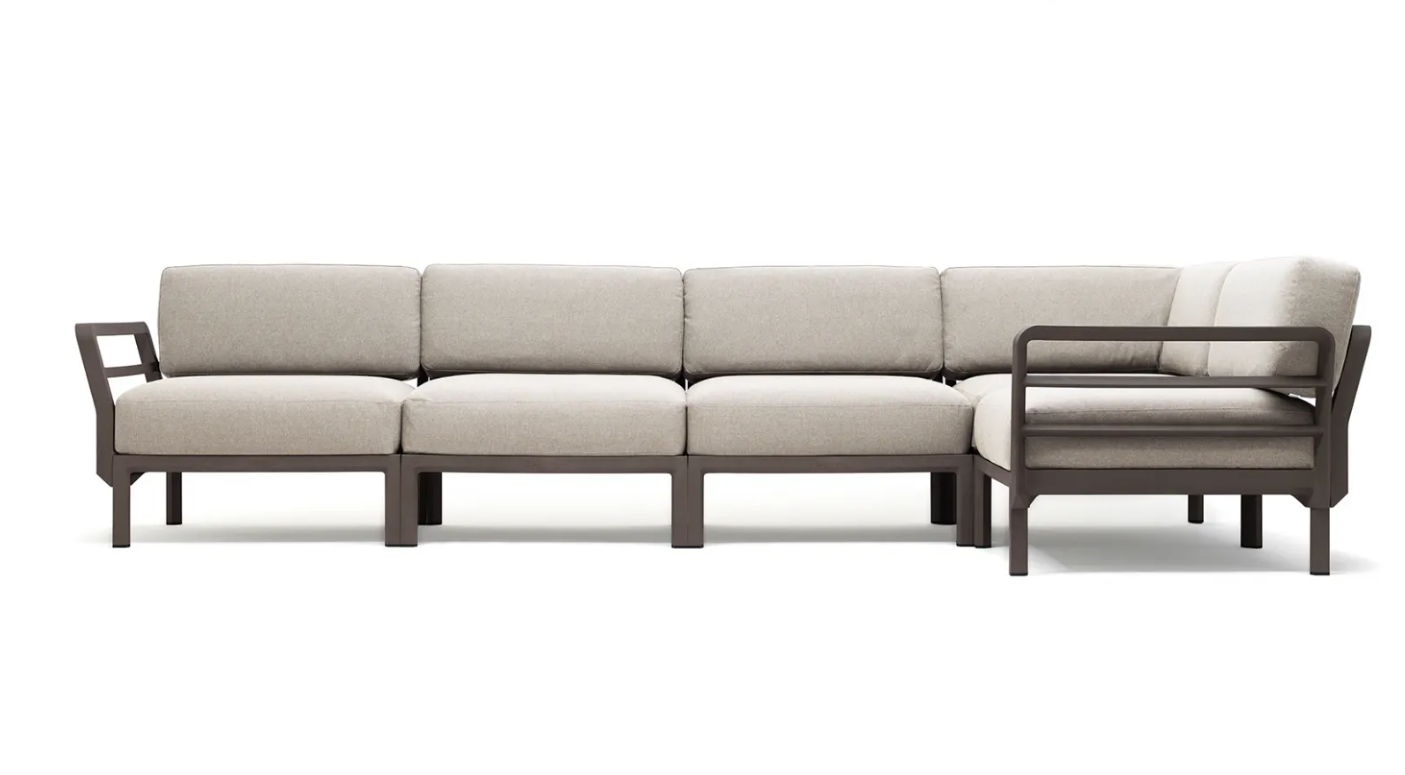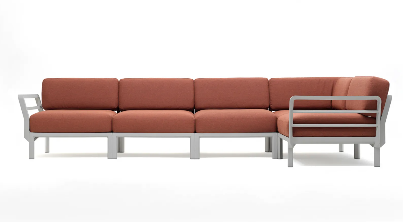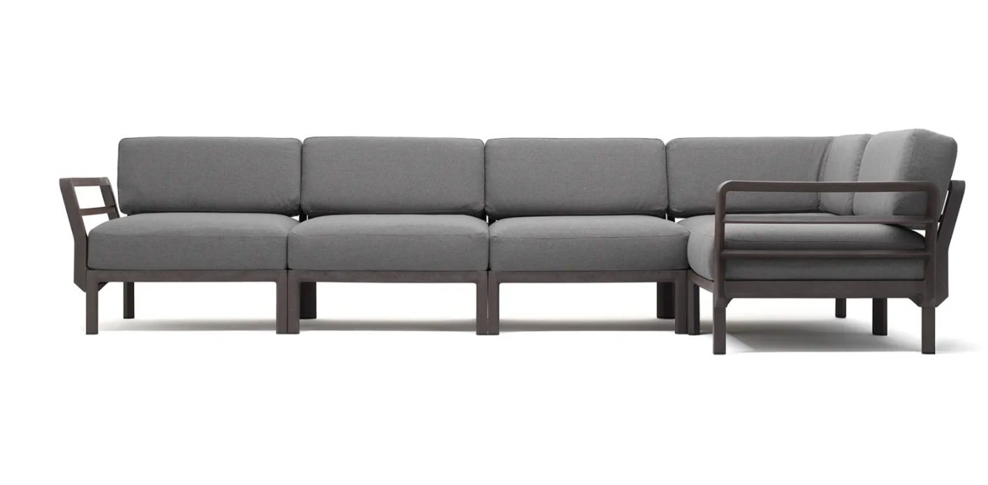 MAXIMO 5 est un canapé modulable avec une structure en résine régénérée et des tissus à haute teneur en matières recyclées