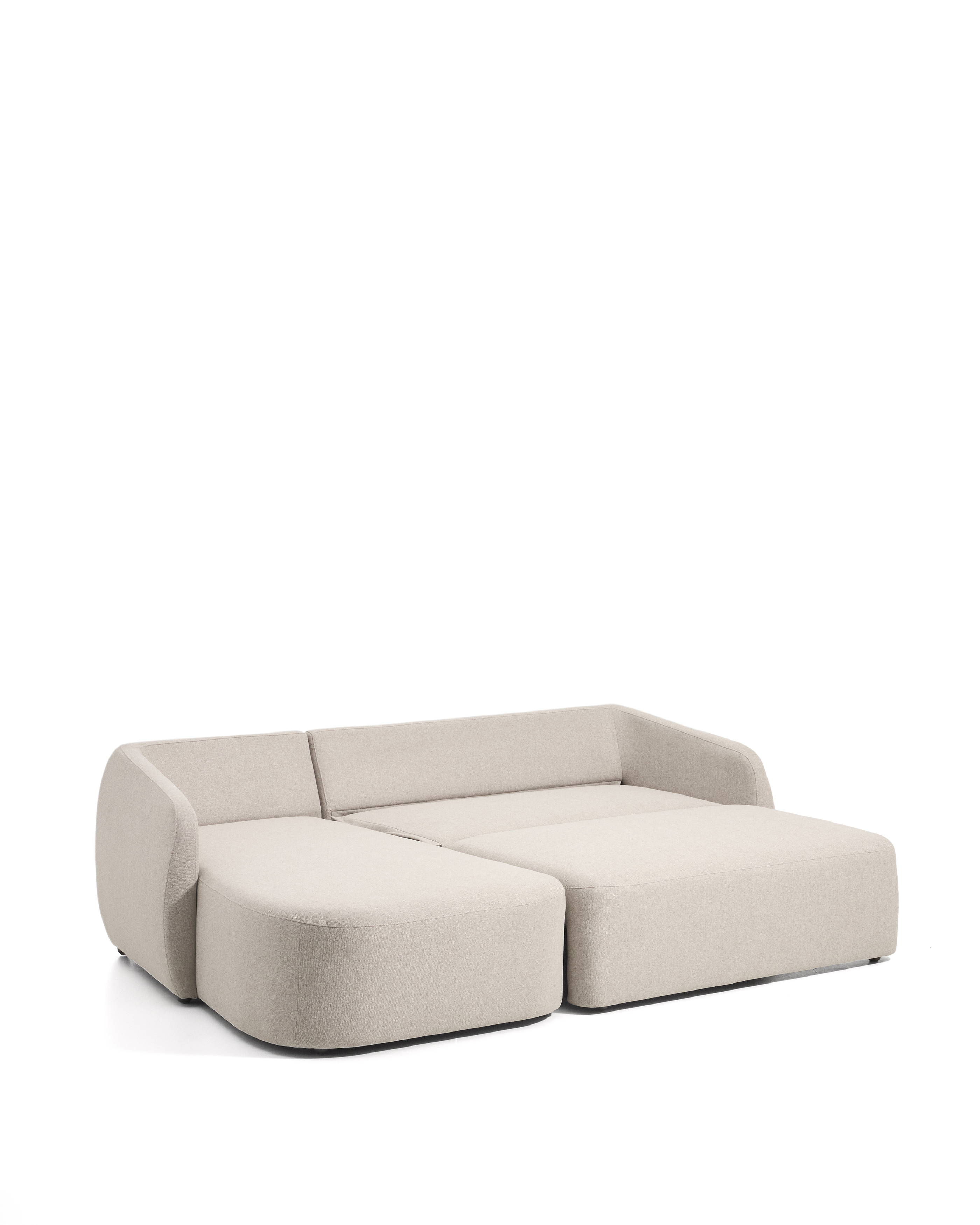 Le canapé-lit Laira se distingue par son revêtement en chenille de haute qualité, doté d'une structure généreuse, extrêmement douce et résistante à l'abrasion. Son système d'ouverture en Y permet de le transformer rapidement et facilement en un confortable lit de 150 x 230 cm dans sa partie la plus large, grâce à son mécanisme d'ouverture synchronisée. Une fois ouvert, il peut également servir de méridienne. La mousse de densité moyenne de 28 kg/m³ assure une assise mi-ferme, offrant un équilibre parfait entre confort et soutien. Les coussins de dossier sont déhoussables et garnis de fibres et de mousse hachée pour un confort enveloppant. La structure interne est en pin massif et contreplaqué. Le pin massif est certifié FSC™ 100 % Chaîne de Contrôle et s'inscrit dans un modèle de gestion forestière responsable, tandis que le contreplaqué est certifié FSC Mix Credit, ce qui signifie qu'il est fabriqué à partir d'un mélange de matériaux issus de forêts certifiées FSC et de bois contrôlés FSC.