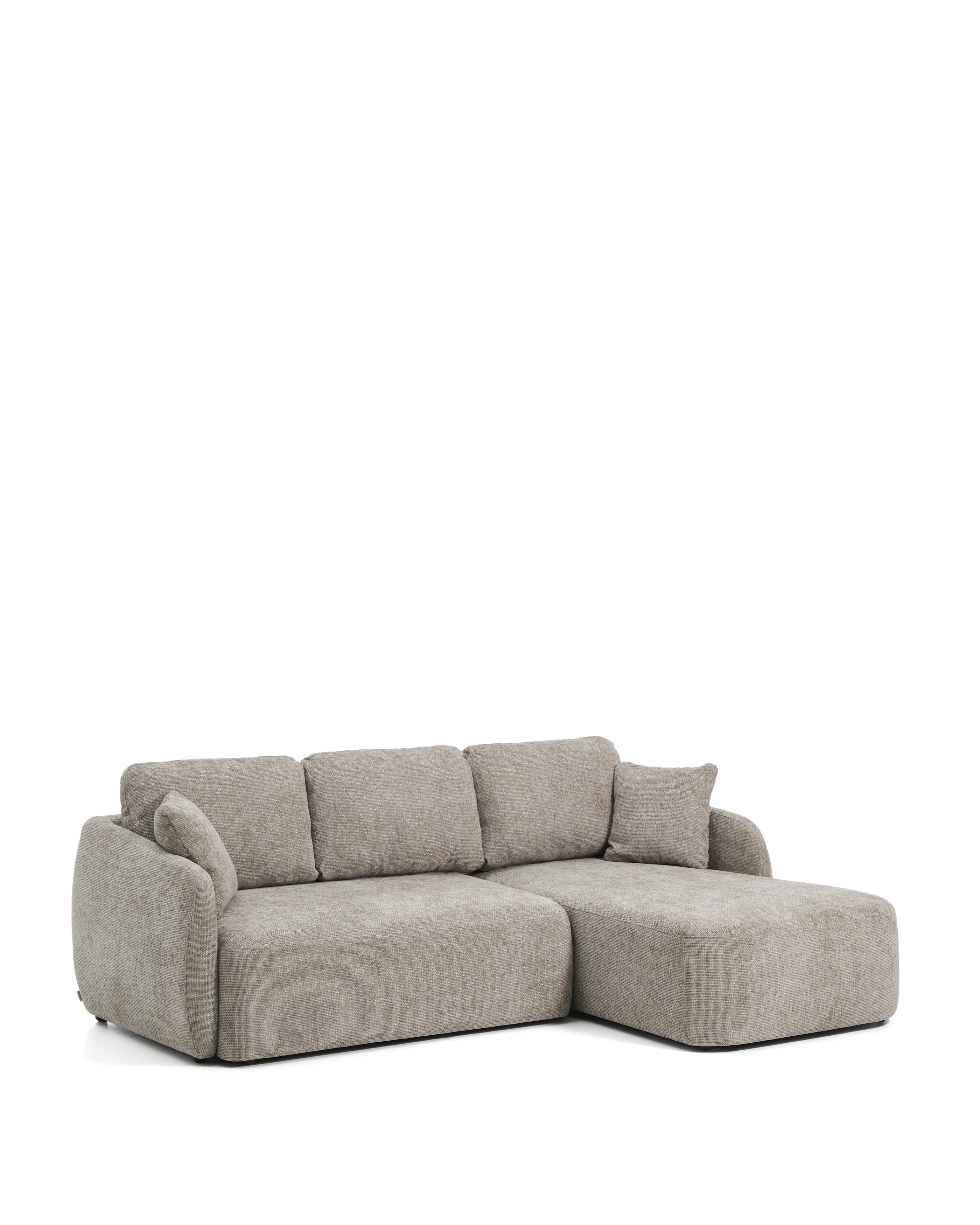 Le canapé-lit Laira se distingue par son revêtement en chenille de haute qualité, doté d'une structure généreuse, très douce et résistante à l'abrasion. Son système d'ouverture en Y permet de le transformer rapidement et facilement en un confortable lit de 150 x 230 cm dans sa partie la plus large, grâce à son mécanisme d'ouverture synchronisée. Une fois ouvert, il peut également servir de méridienne. La mousse de densité moyenne de 28 kg/m³ assure une assise mi-ferme, offrant un équilibre parfait entre confort et soutien. Les coussins de dossier sont déhoussables et garnis de fibres et de mousse hachée pour un confort enveloppant. La structure interne est en pin massif et contreplaqué. Le pin massif est certifié FSC™ 100 % Chaîne de Contrôle et s'inscrit dans un modèle de gestion forestière responsable, tandis que le contreplaqué est certifié FSC Mix Credit, ce qui signifie qu'il est fabriqué à partir d'un mélange de matériaux issus de forêts certifiées FSC et de bois contrôlés FSC.
