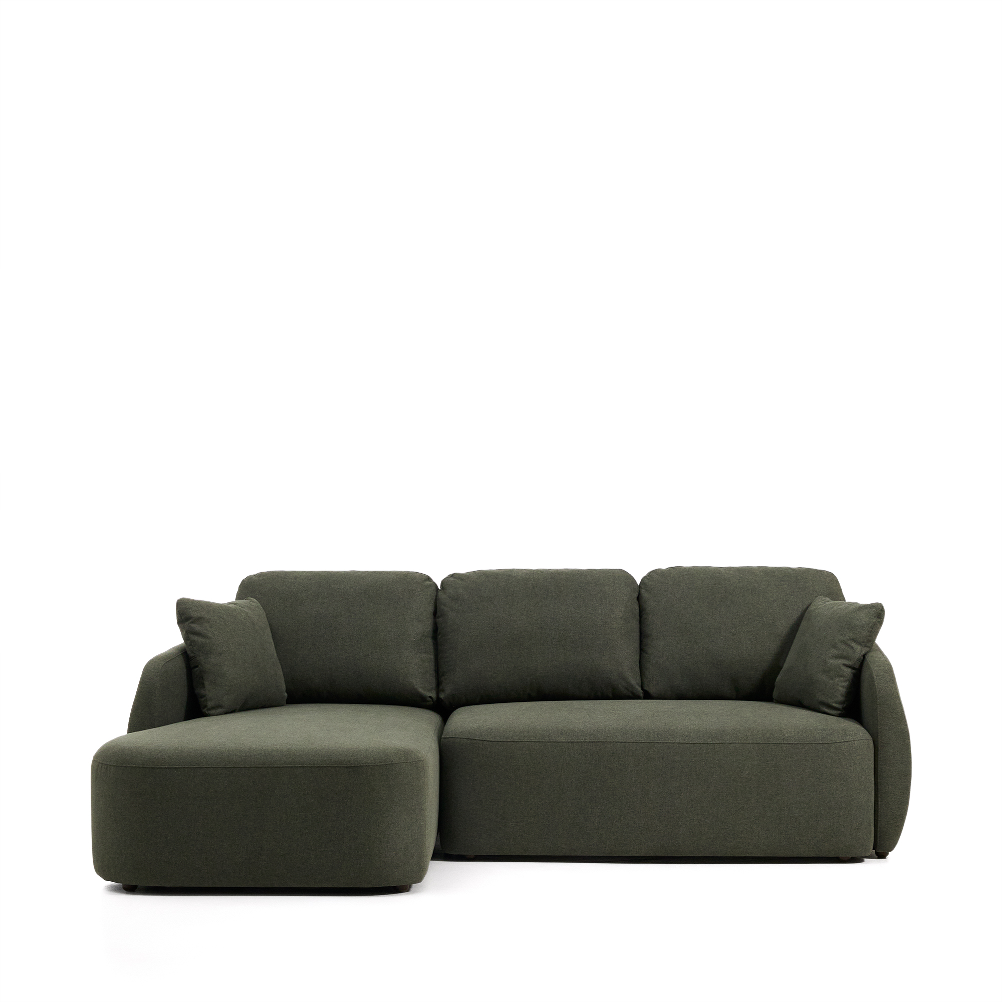 Canapé convertible 3 places Laira en chenille vert foncé avec méridienne gauche 246 cm FSC Mix Credit