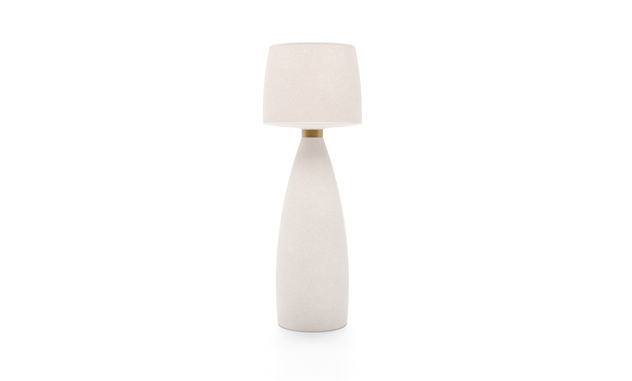 réinterprète l'archétype de la lampe à abat-jour dans un style pop et sophistiqué, avec des courbes fluides et une base élancée.