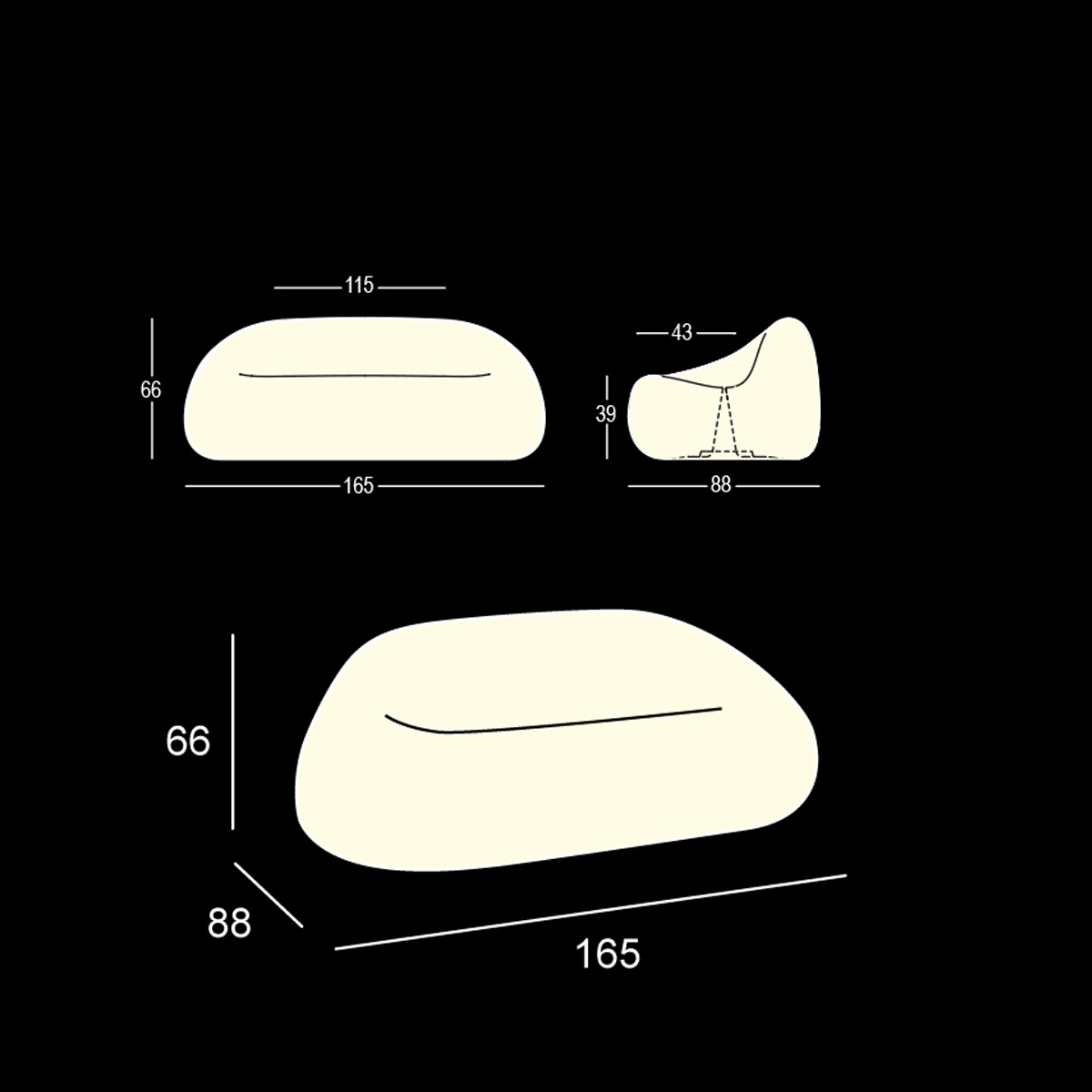 Dimensions : 165x88xh66 cm