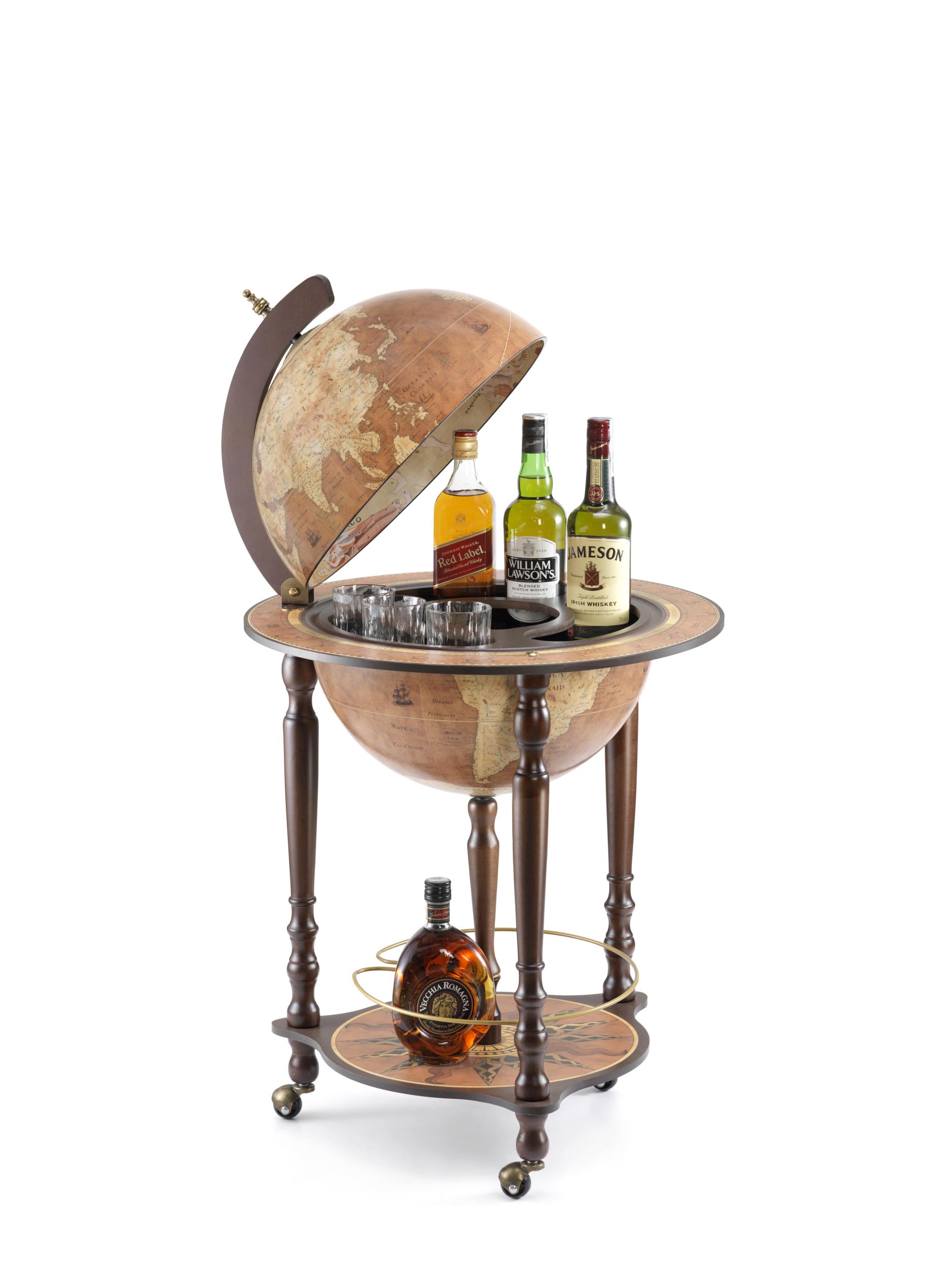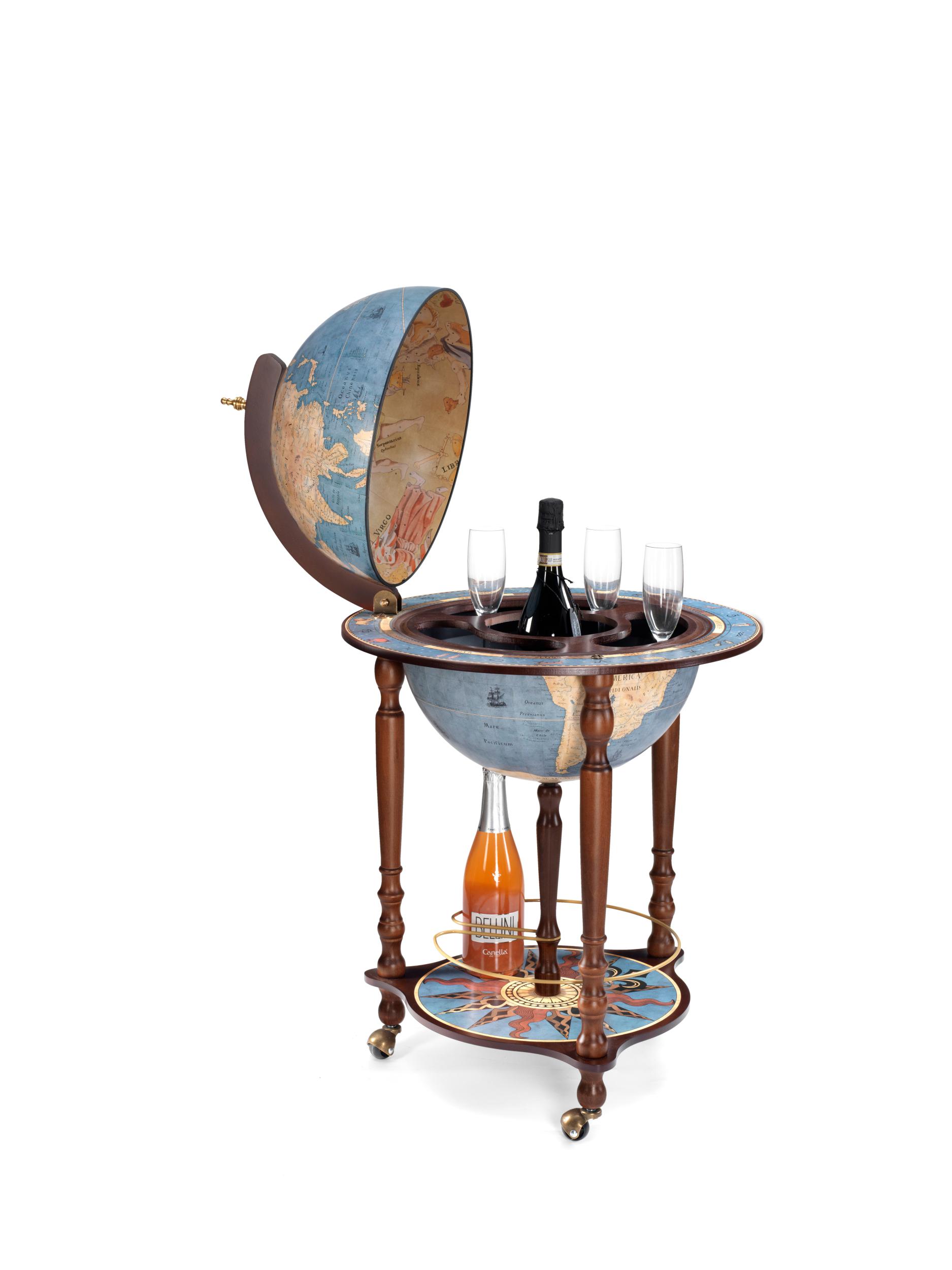 Réplique d'une carte du XVIIIe siècle dessinée à la main par nos cartographes, le globe bar Da Vinci est idéal pour tout type d'environnement et devient le protagoniste absolu de n'importe quelle pièce. La base est finement décorée d'une représentation d'une rose des vents, parfaitement en harmonie avec l'illustration du zodiaque placée autour de l'équateur. L'intérieur de l'hémisphère nord présente des images décoratives de la constellation céleste .