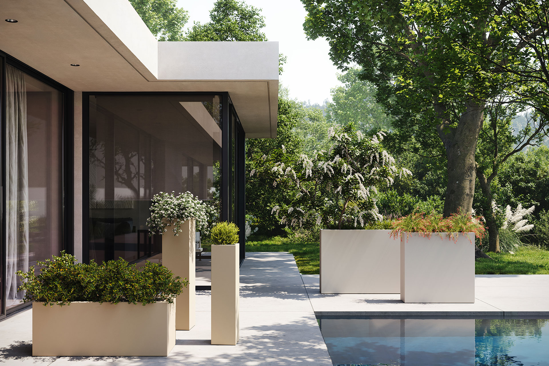Vase en résine de polyéthylène rotomoulée. 100 % recyclable. Convient à un usage intérieur et extérieur. Disponible en plusieurs finitions.