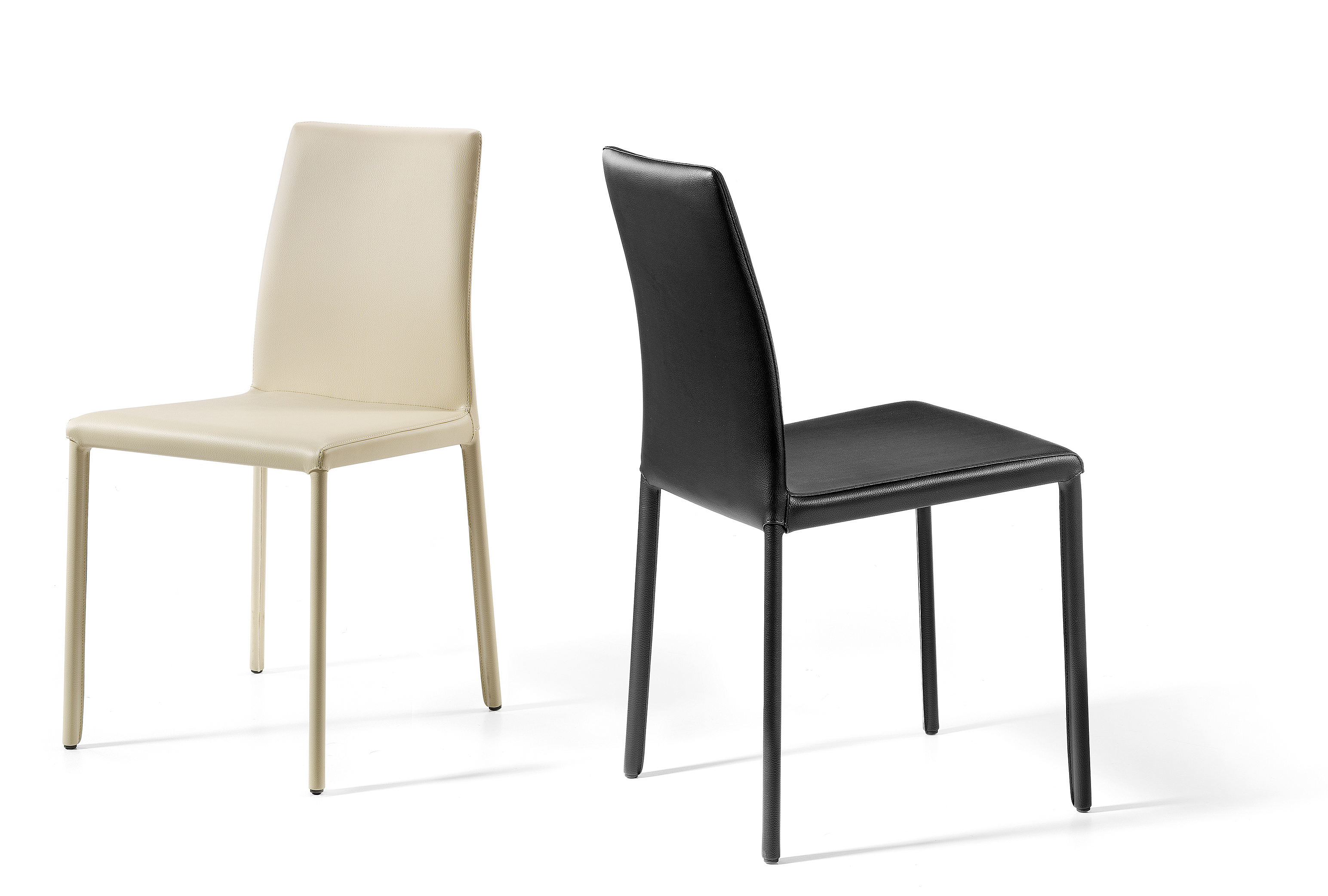 Chaise avec structure en tube d'acier peint avec dossier bas ou haut.