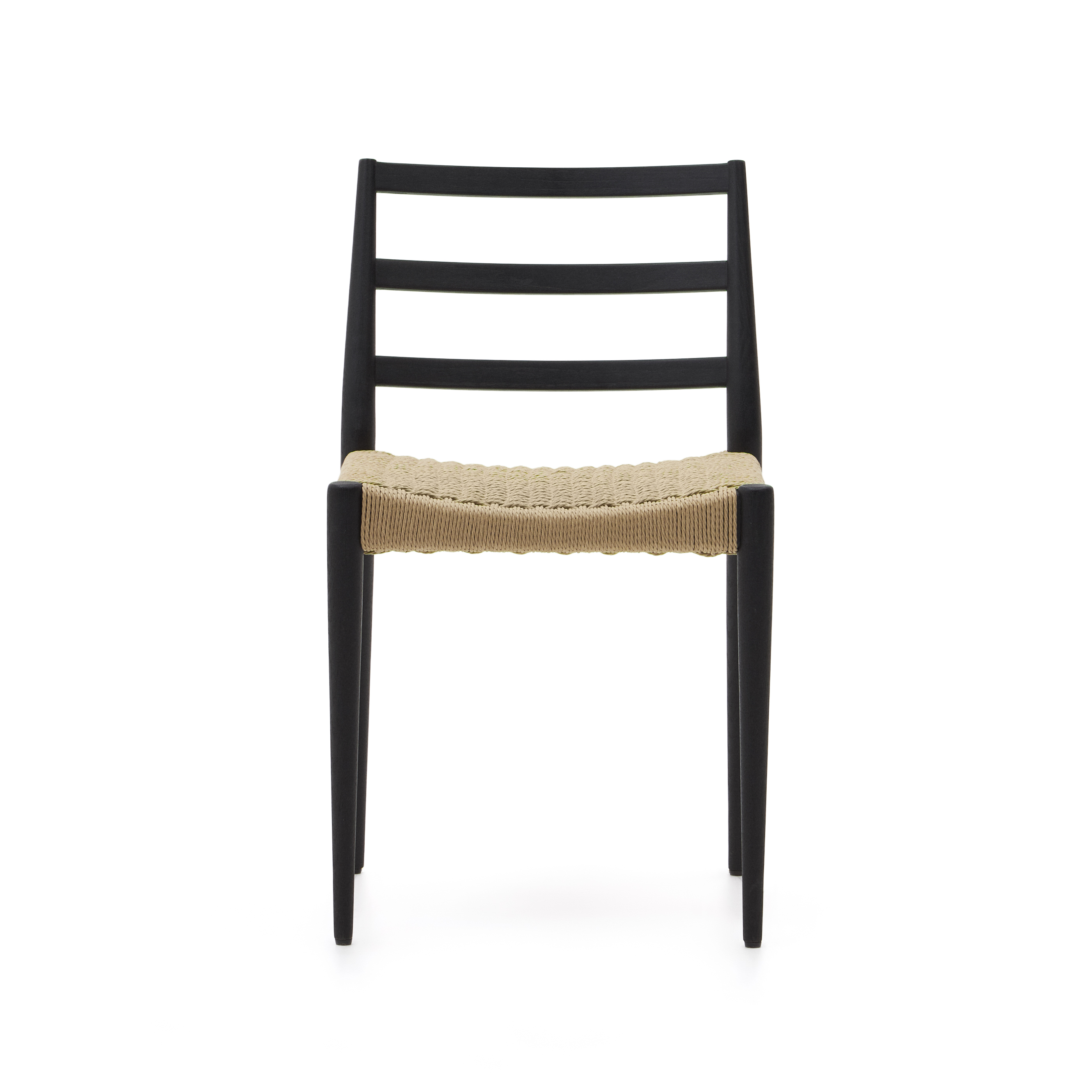 Chaise Analy en chêne massif finition noire et assise en corde 100% FSC