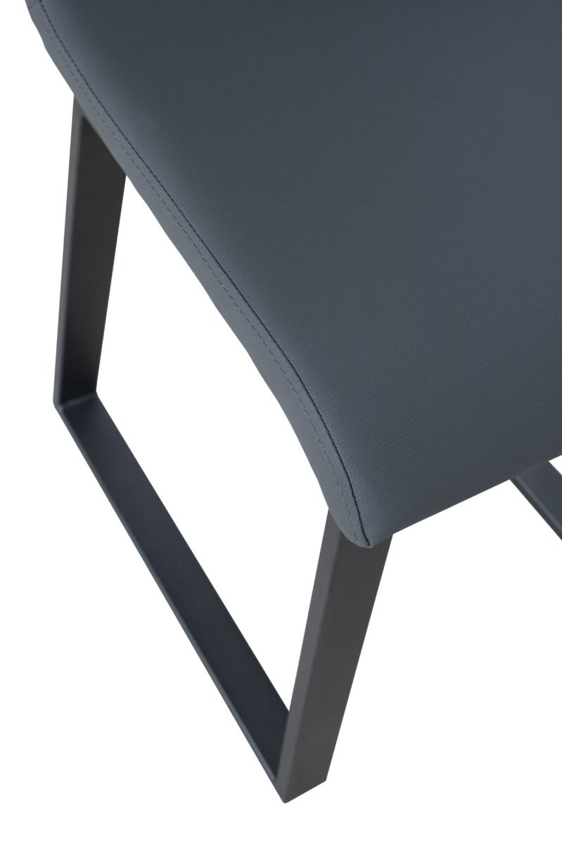 Chaise Baffy, une chaise confortable à piètement luge sans accoudoirs, avec des pieds en métal peint anthracite et une assise en bois recouverte de simili cuir légèrement rembourrée.