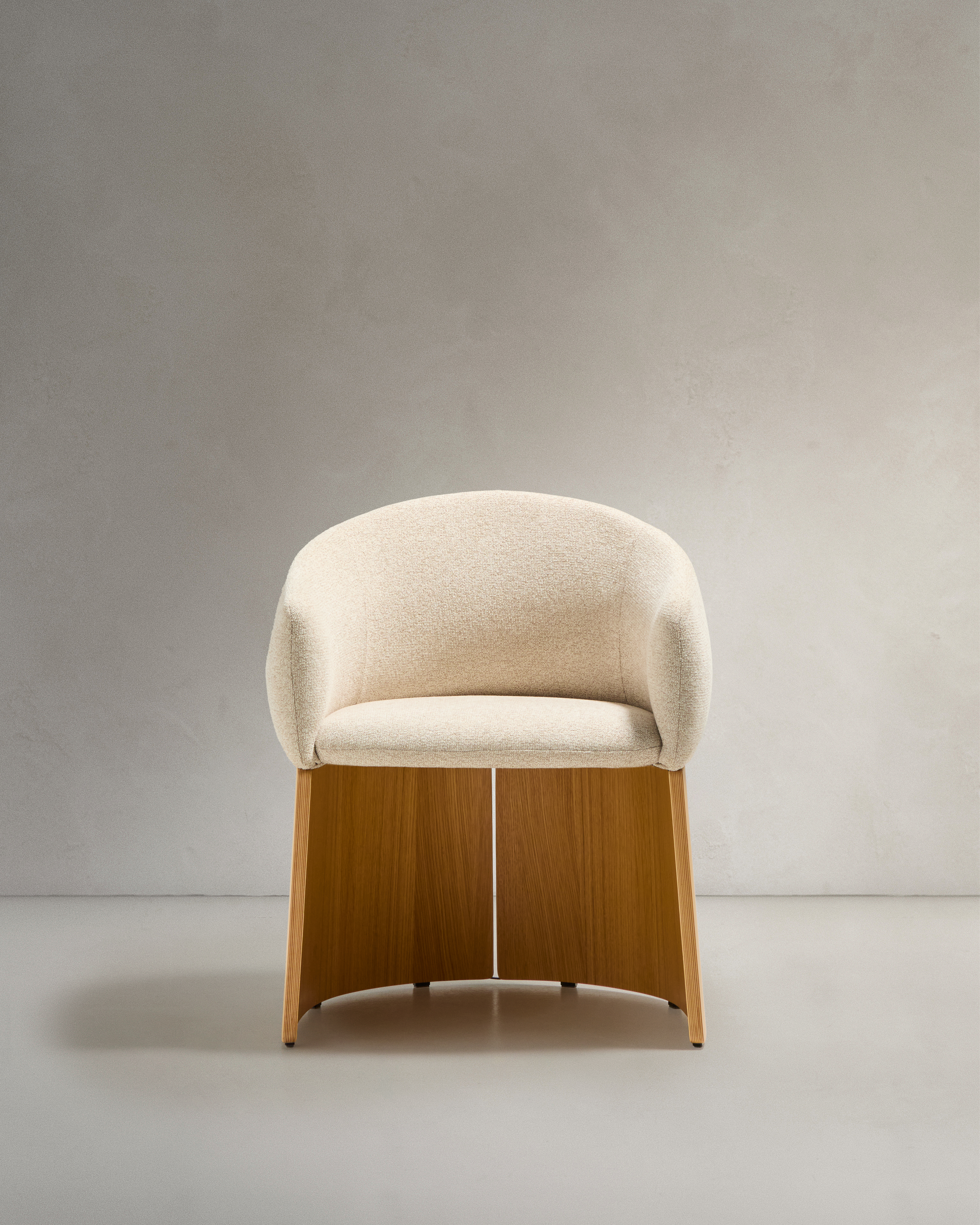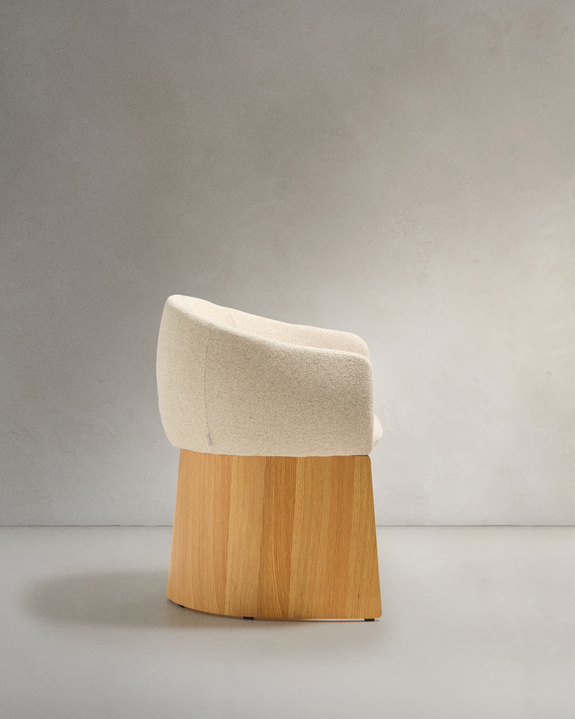 Chaise Bosca en chenille beige et placage chêne 100% FSC