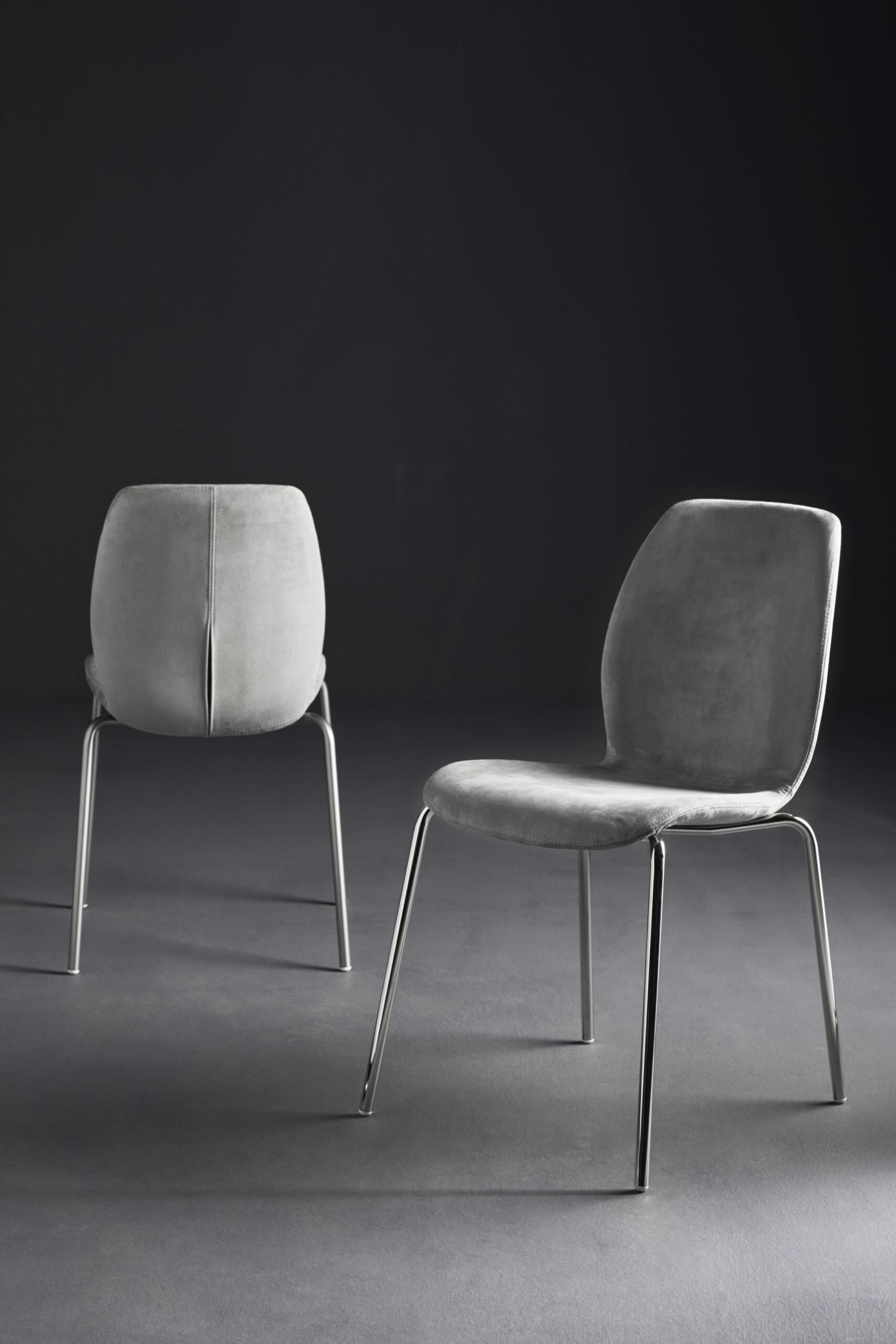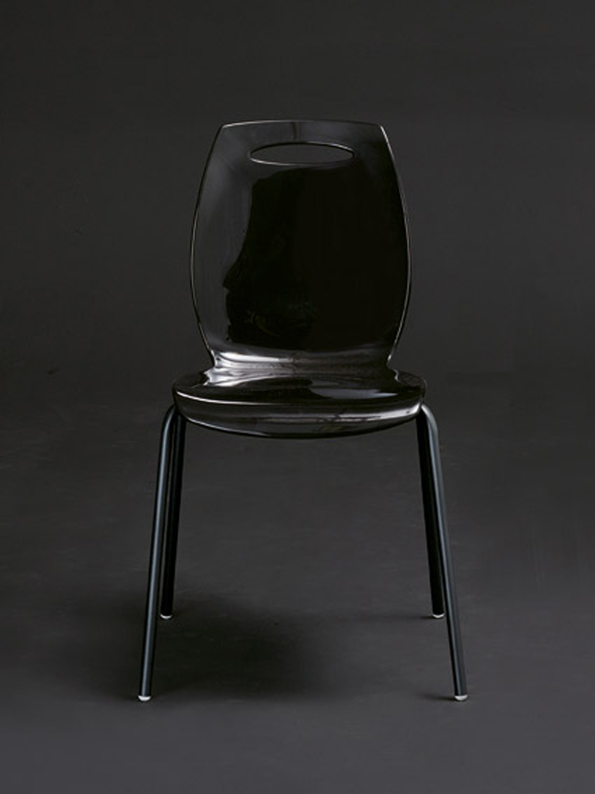 Chaise empilable avec structure en acier et assise en technopolymère composite.
