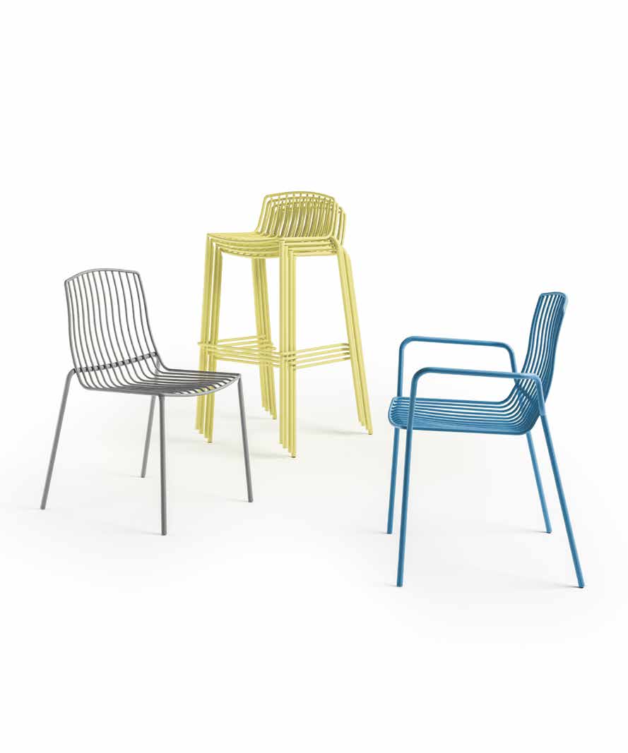 L'assise est caractérisée par une membrane Batyline, légère, élégante, résistante aux rayons UV, aux moisissures, aux intempéries, recyclable et facilement remplaçable.