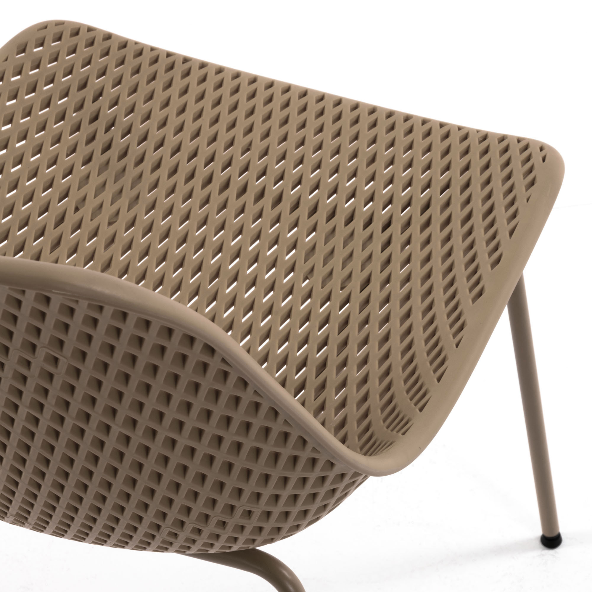 La chaise d'extérieur Quinby allie style contemporain et fonctionnalité, idéale pour apporter du caractère à vos terrasses, jardins, espaces extérieurs ou espaces professionnels. Sa coque en polypropylène recyclé est légère, résistante et facile à nettoyer, garantissant une excellente durabilité, même en extérieur.