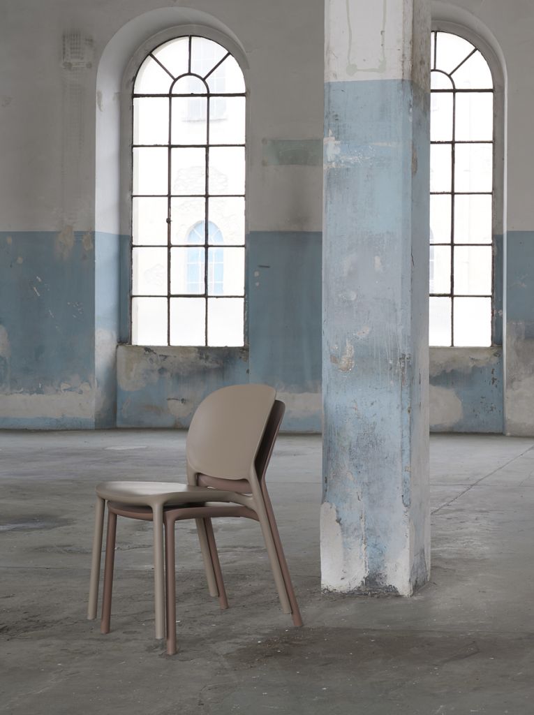 Pour le modèle HUG, un technopolymère certifié industriel régénéré post-consommation (PCR) a été choisi, élevant la chaise et le fauteuil à une nouvelle norme de qualité et d'éthique.