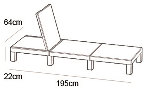 Il mesure 195 cm de long, 65 cm de large et 25,5 cm de haut, avec un dossier inclinable à 4 positions pour un confort maximal.