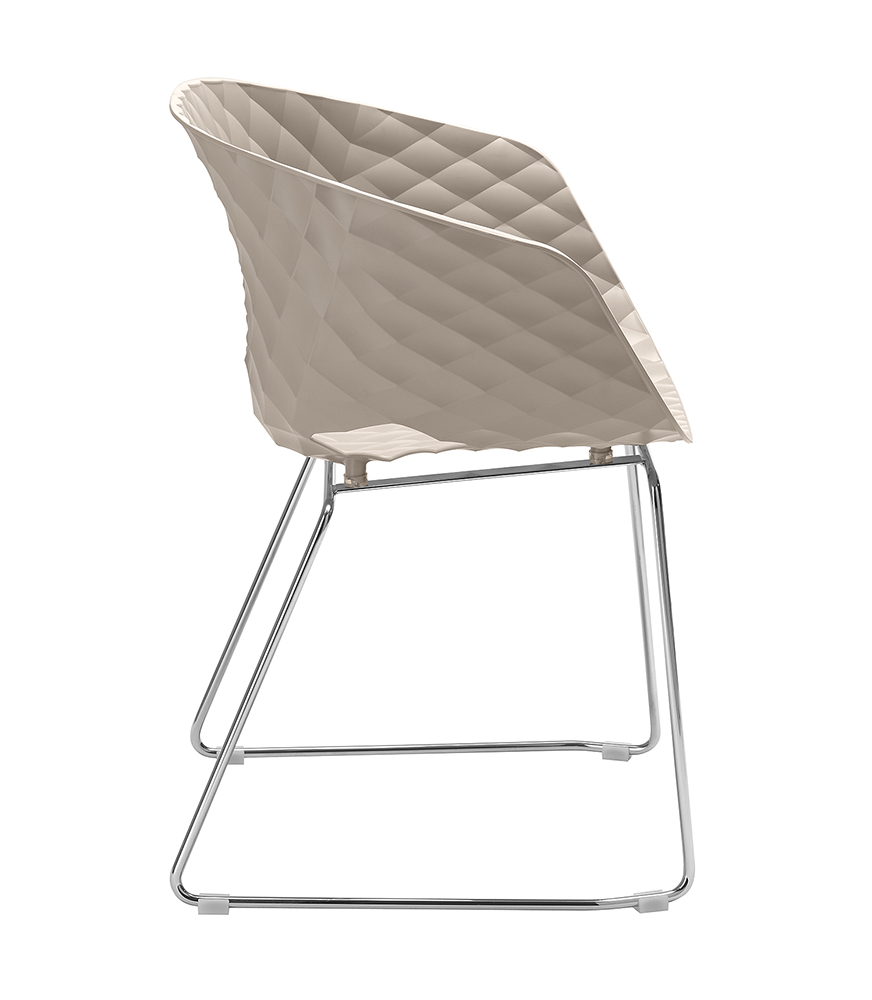 Uni-Ka, évolution de la marque Metalmobil, est un fauteuil raffiné au design enveloppant conçu par Et al. Le corps est en polypropylène renforcé de fibre de verre et présente une texture élégante qui enrichit son esthétique.