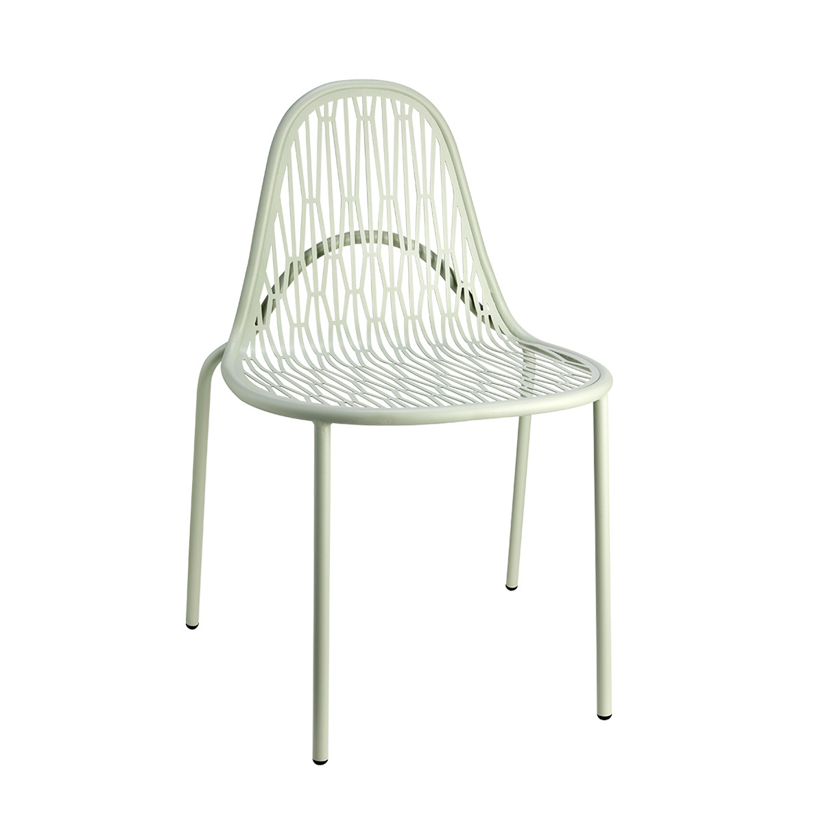 Bien qu'elle paraisse simple, la conception de Malvasia représente un défi d'ingénierie : le dossier et l'assise sont réalisés à partir d'une seule pièce de métal perforé et calandré, puis soudés au cadre tubulaire avec une telle précision que les joints sont presque invisibles.