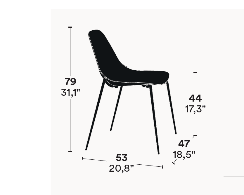 Dimensions : empilable: 45x52xh79 cm