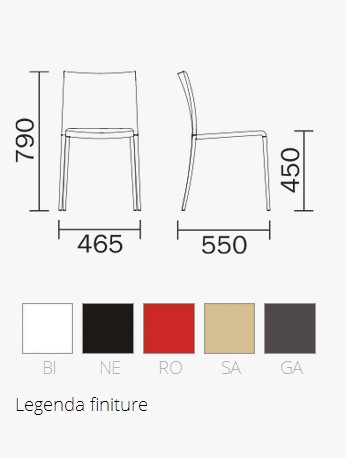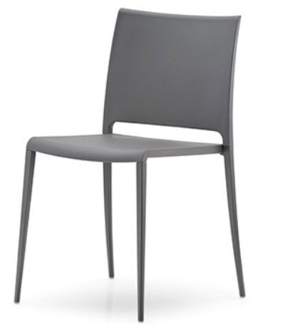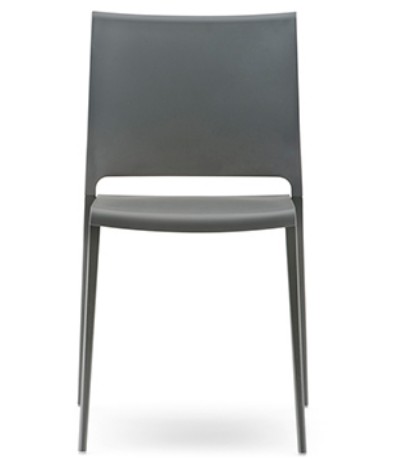 Chaise empilable avec assise et dossier en polypropylène et structure monobloc en aluminium moulé sous pression, disponible en version avec assise, dossier et structure de la même couleur ou avec structure en aluminium.