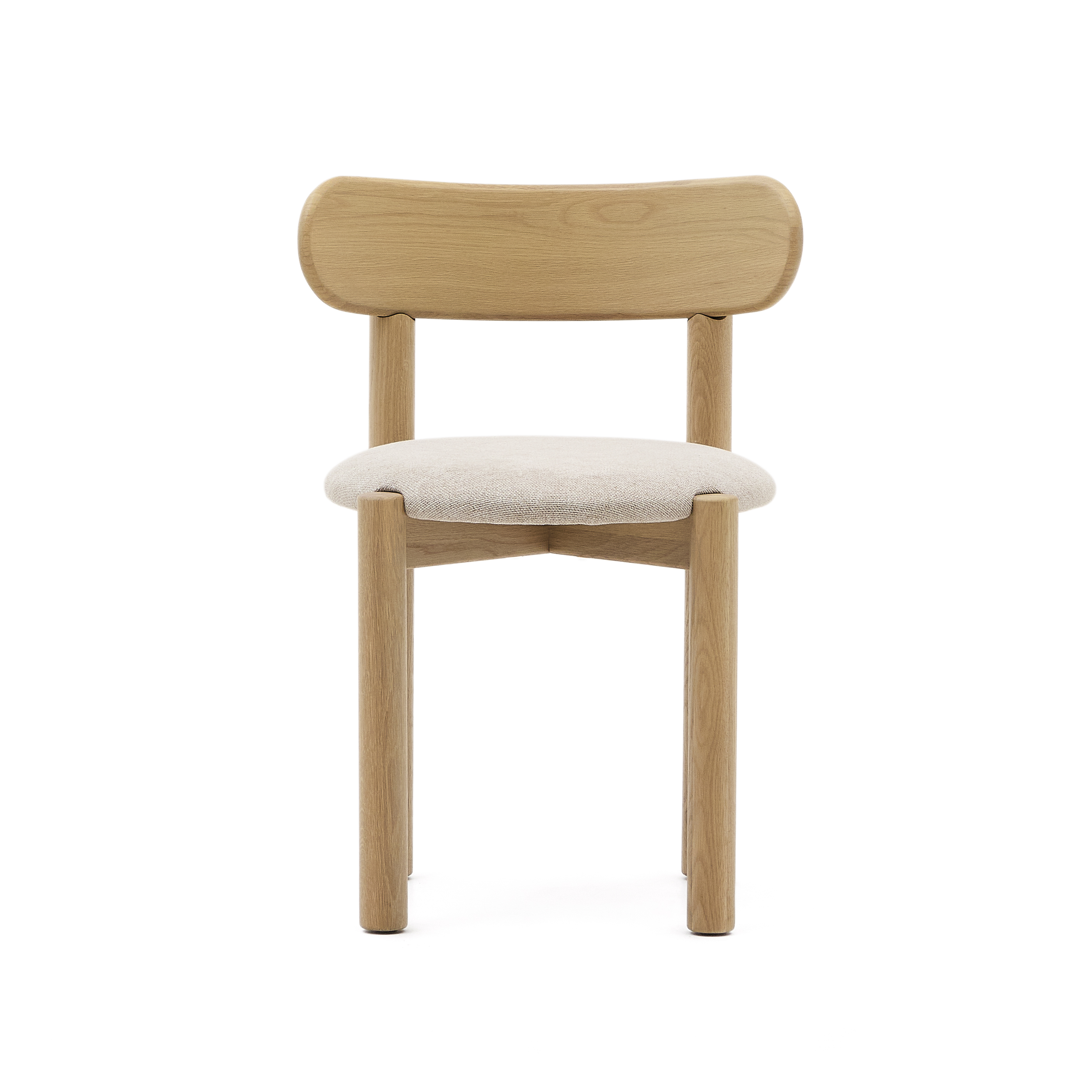 Chaise Nebai en chenille beige avec structure en chêne massif, finition naturelle FSC MIX C