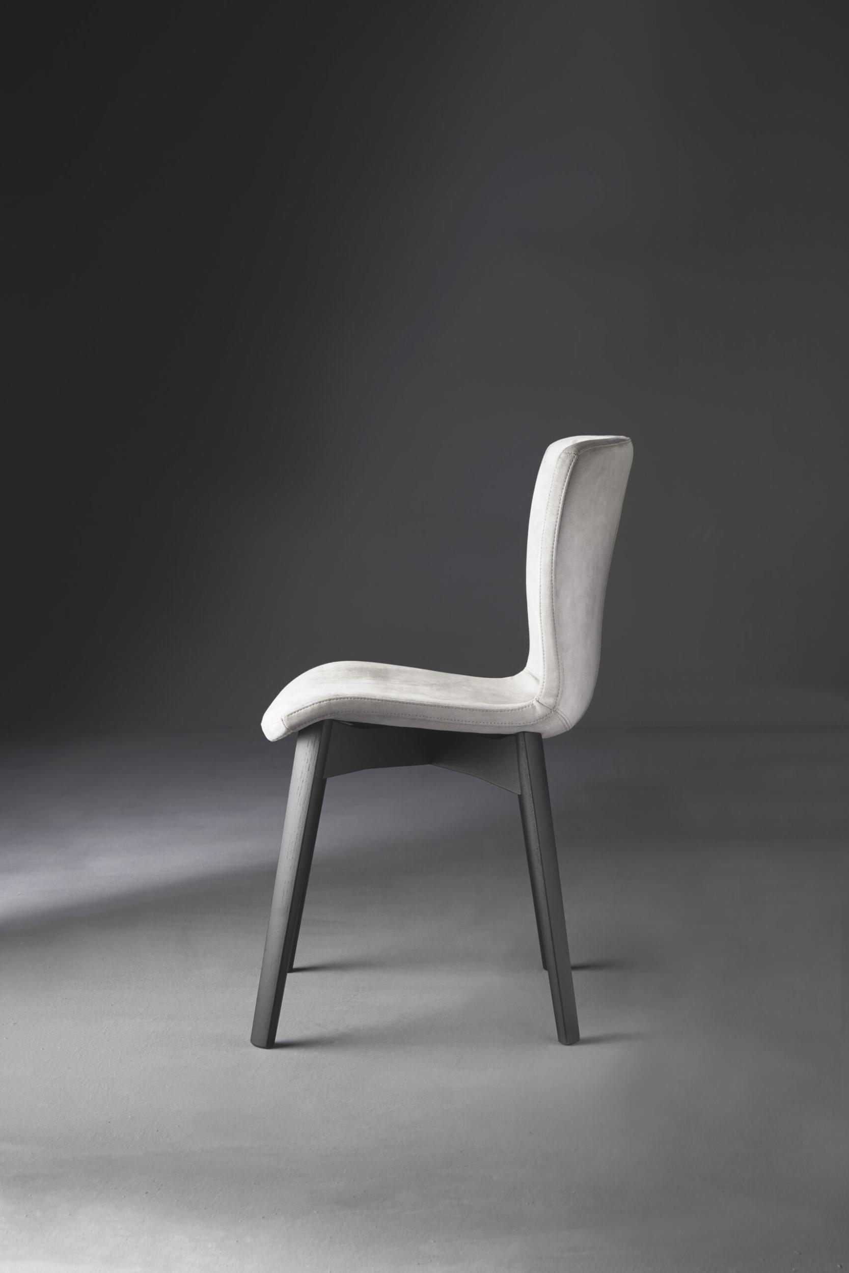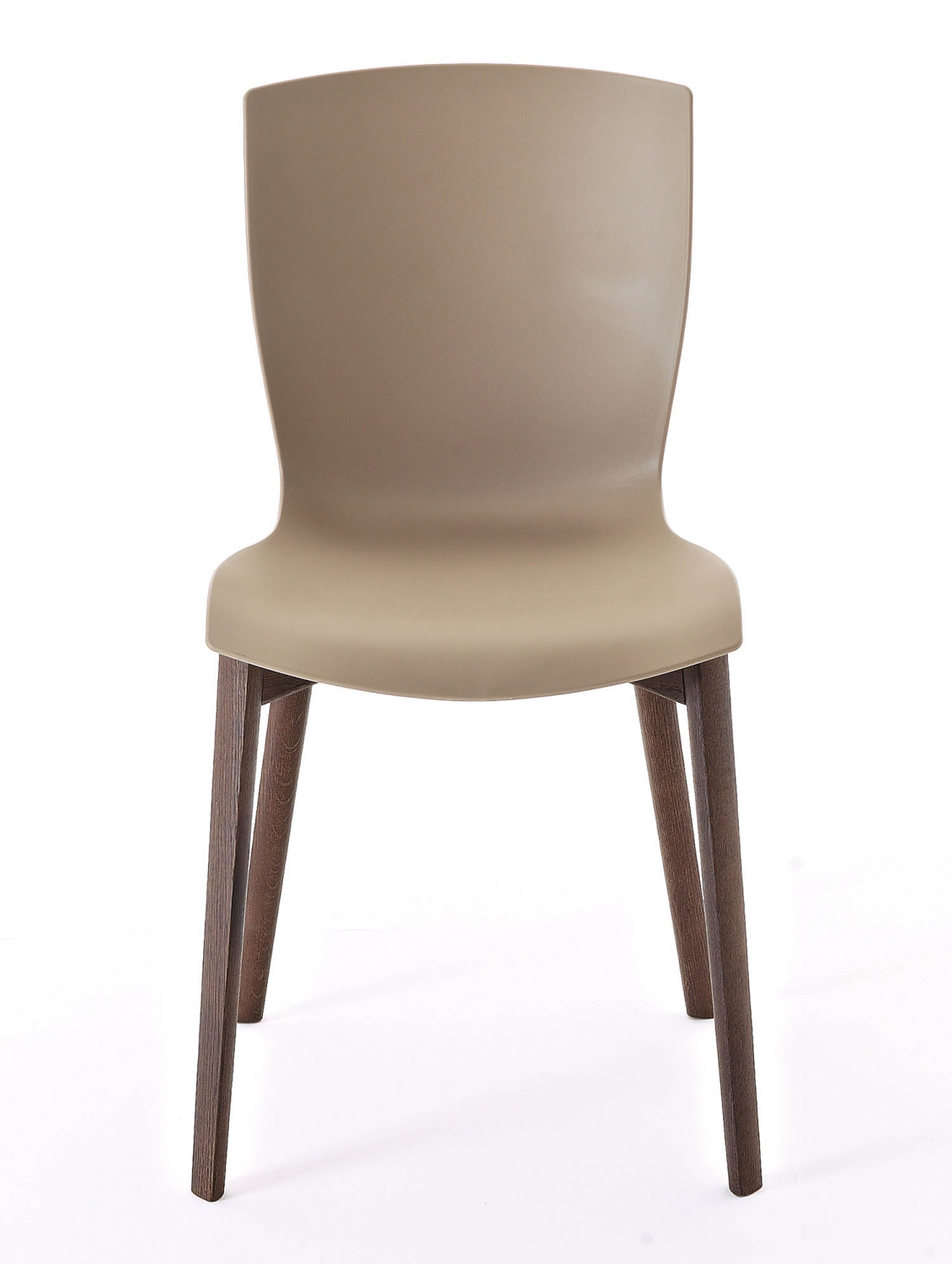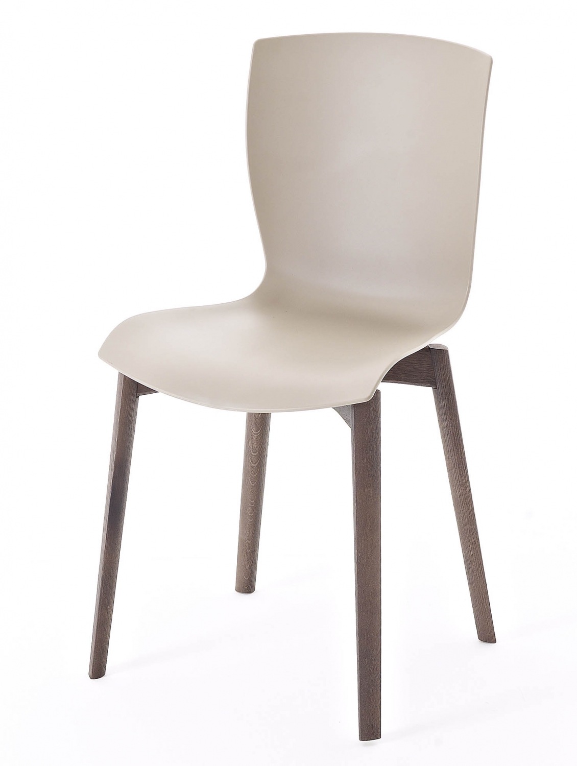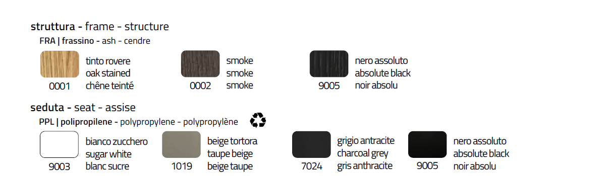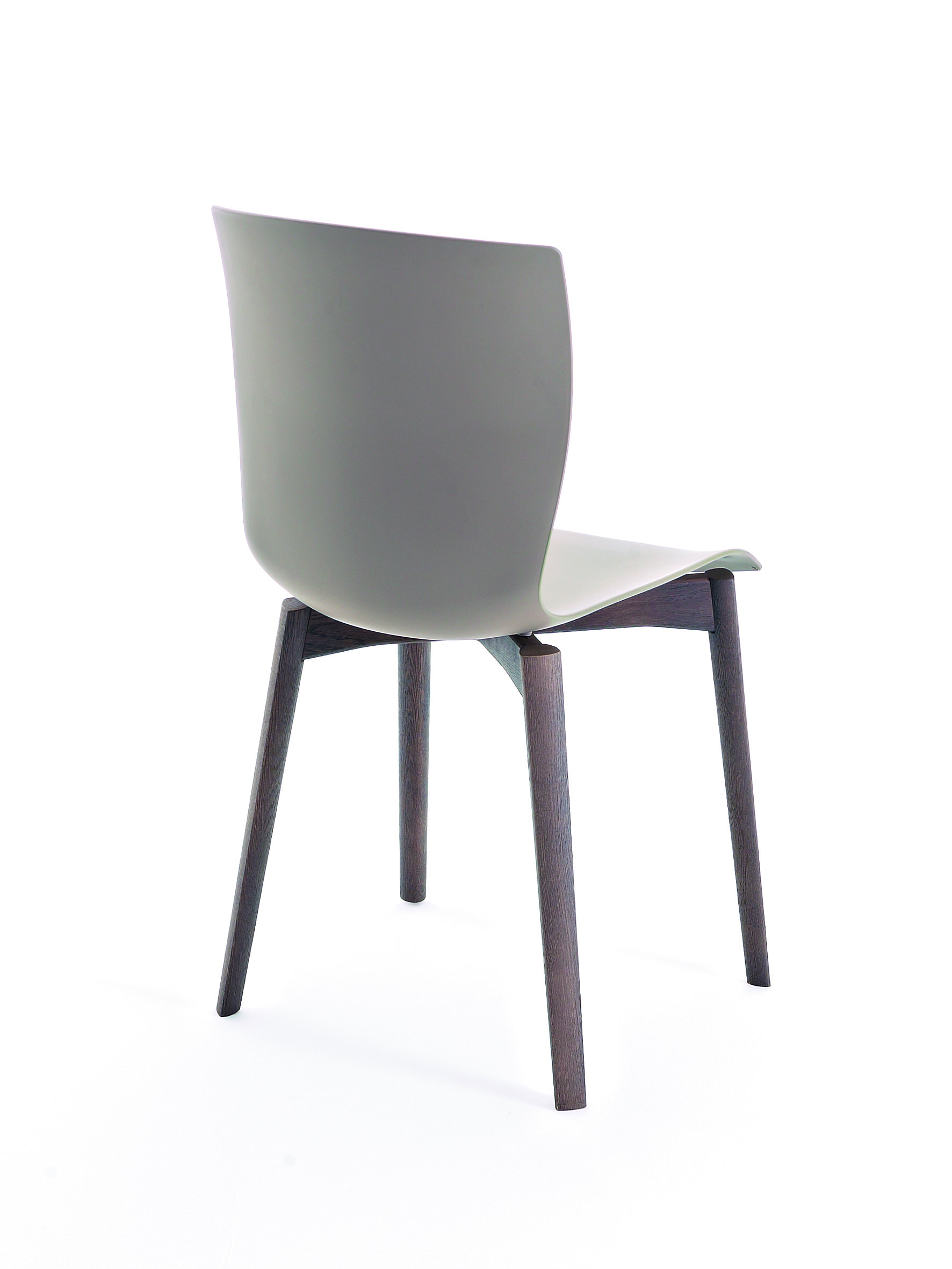 Chaise avec structure en bois de chêne et assise en polypropylène doux au toucher.