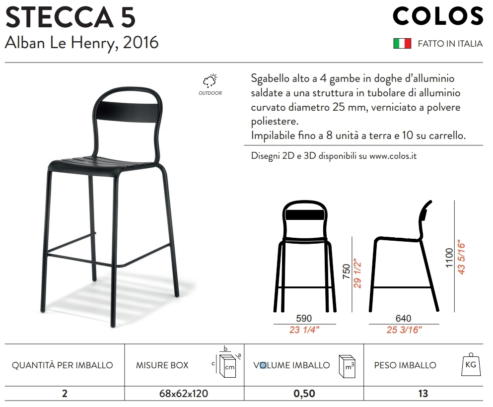 STECCA 5 complète la collection de sièges avec la version haute du tabouret.