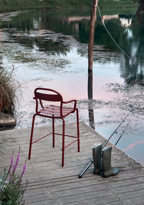 Tous les sièges de cette collection sont en aluminium, un matériau qui s'adapte parfaitement au sens léger de ce produit qui s'adresse principalement, mais pas seulement, aux environnements extérieurs. STECCA, quand vous le voyez, vous invite à vous détendre grâce à sa nature simple et accueillante.