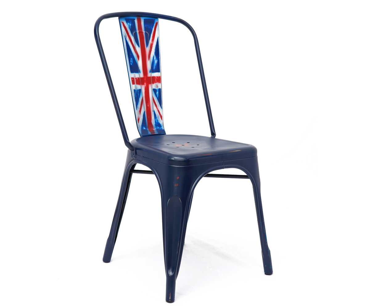 Chaise design empilable, style industriel, avec structure en métal peint en bleu Chaise empilable design, style industriel, idéale pour les contrats, locaux, bars, restaurants, clubs, restauration et banquets, hôtels, bureaux, environnements résidentiels et autres usages multiples.