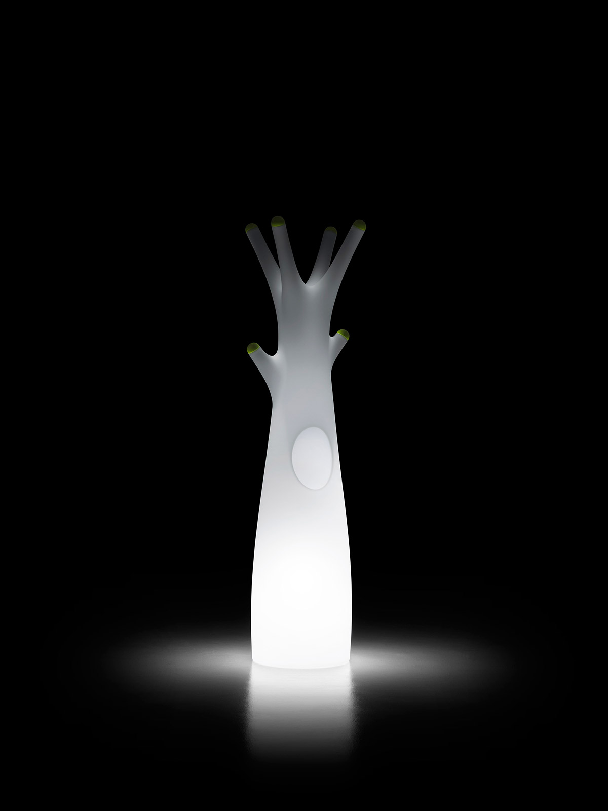 Fabriqué en polyéthylène opalin , résistant et également adapté aux environnements extérieurs couverts, ce porte-manteau est équipé d'une source lumineuse interne qui le rend parfait pour créer une atmosphère dans les entrées, les salons, les locaux, les showrooms ou les espaces contract.