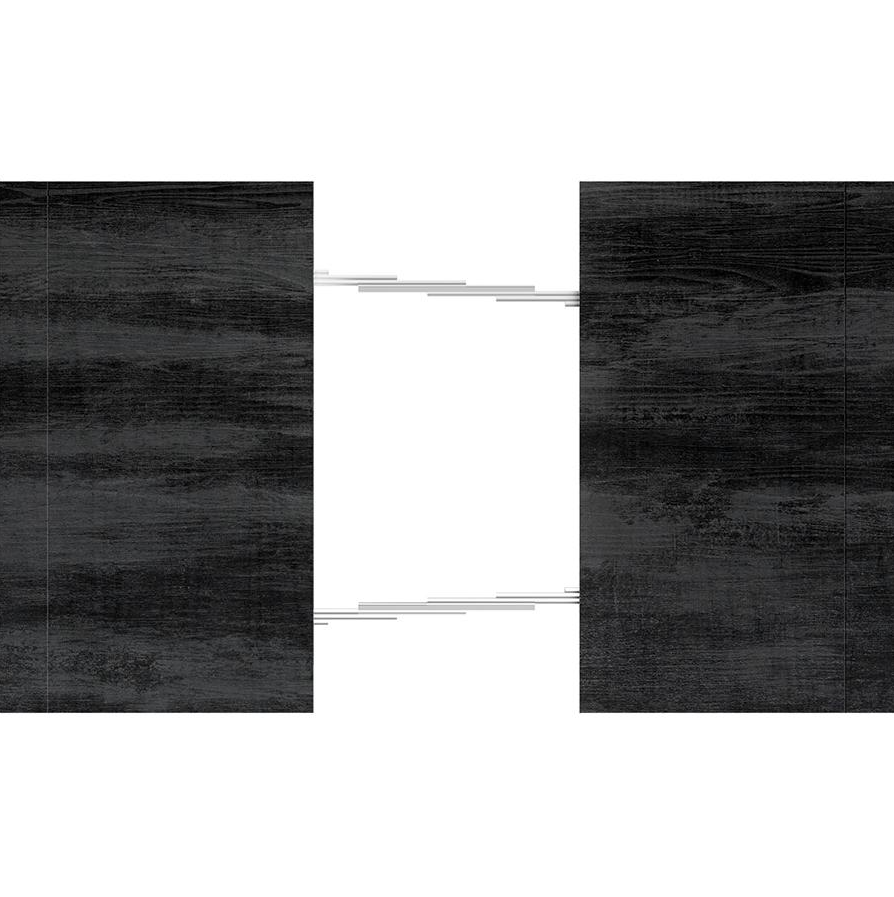 Console extensible avec structure en stratifié, verre trempé et détails en acier inoxydable. Peut accueillir jusqu'à 10 personnes.