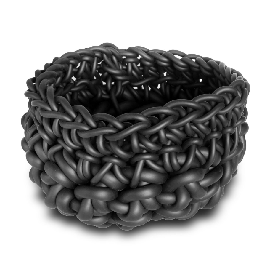 Panier artisanal en néoprène tissé à la main, parfait pour une touche de design moderne et fonctionnel.